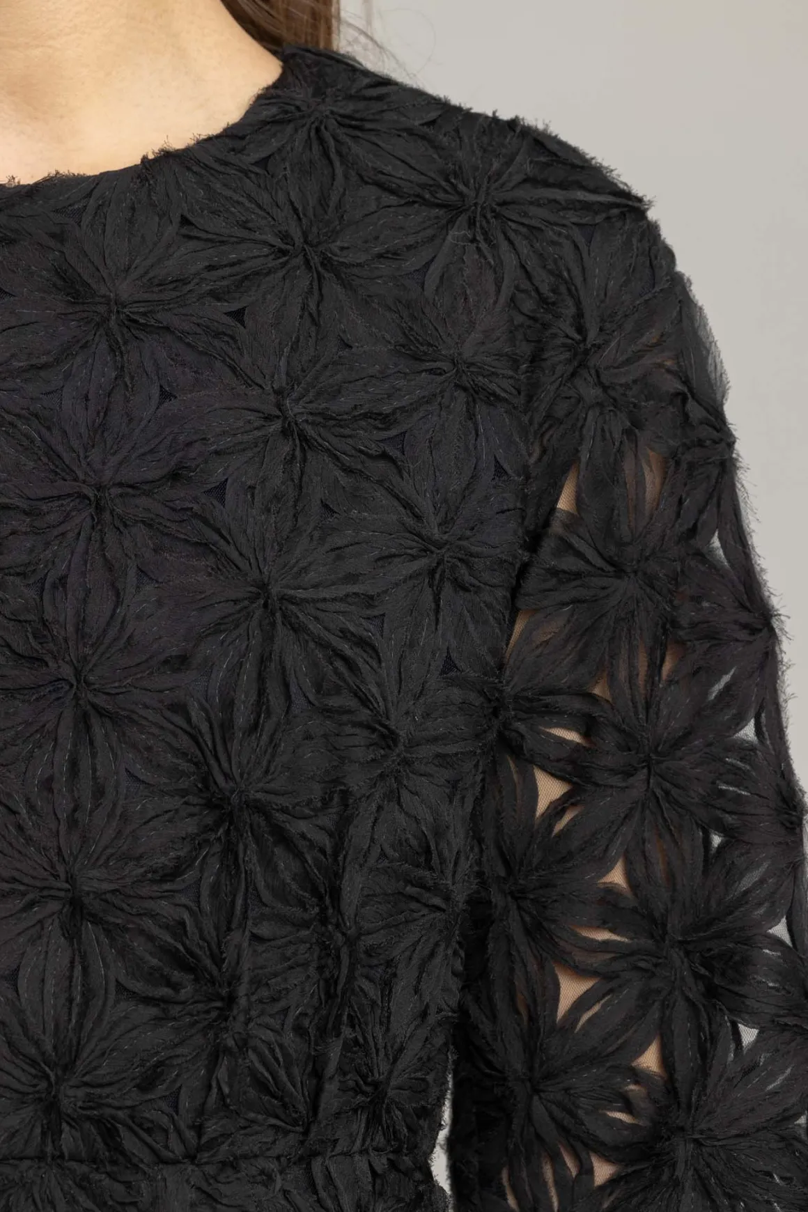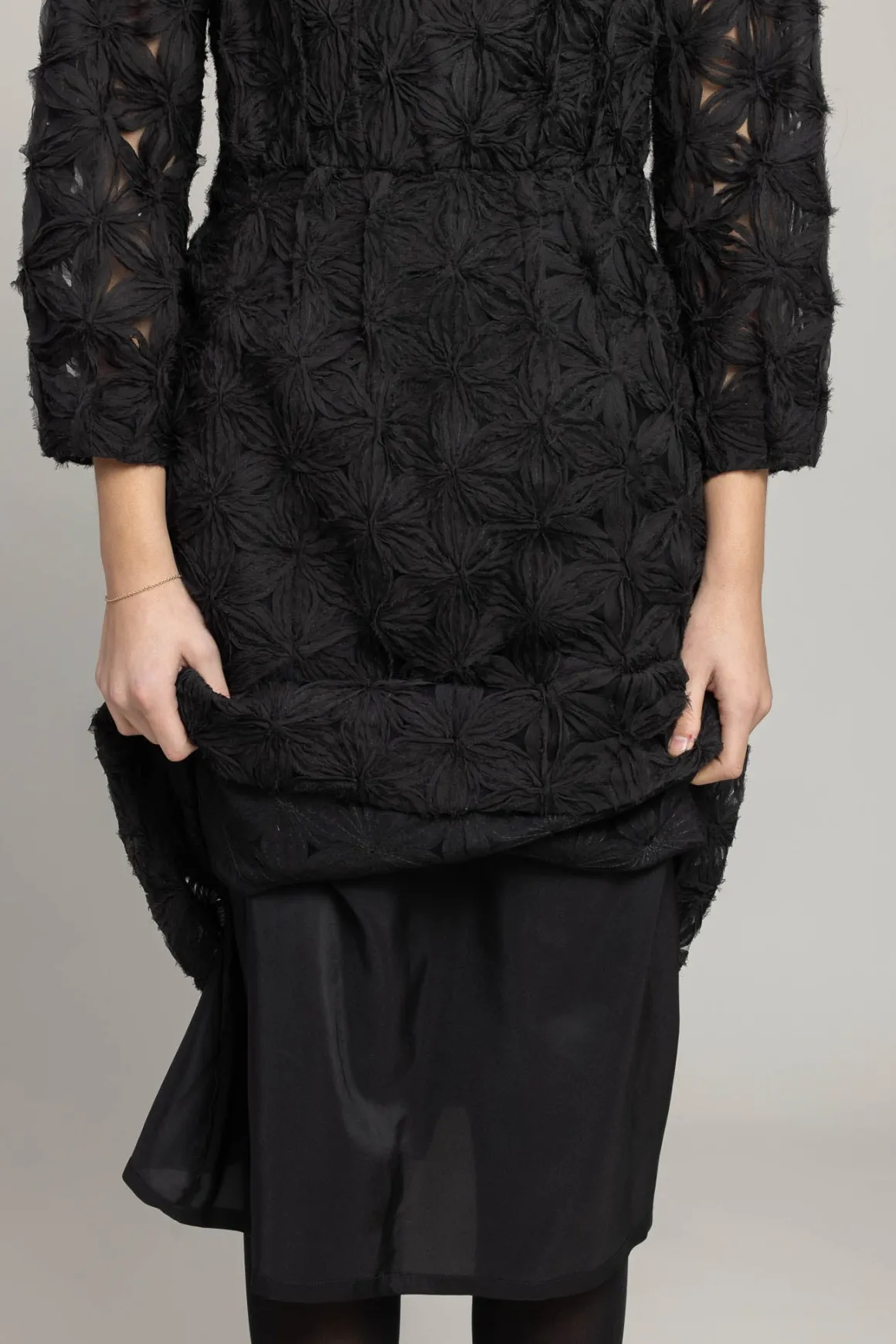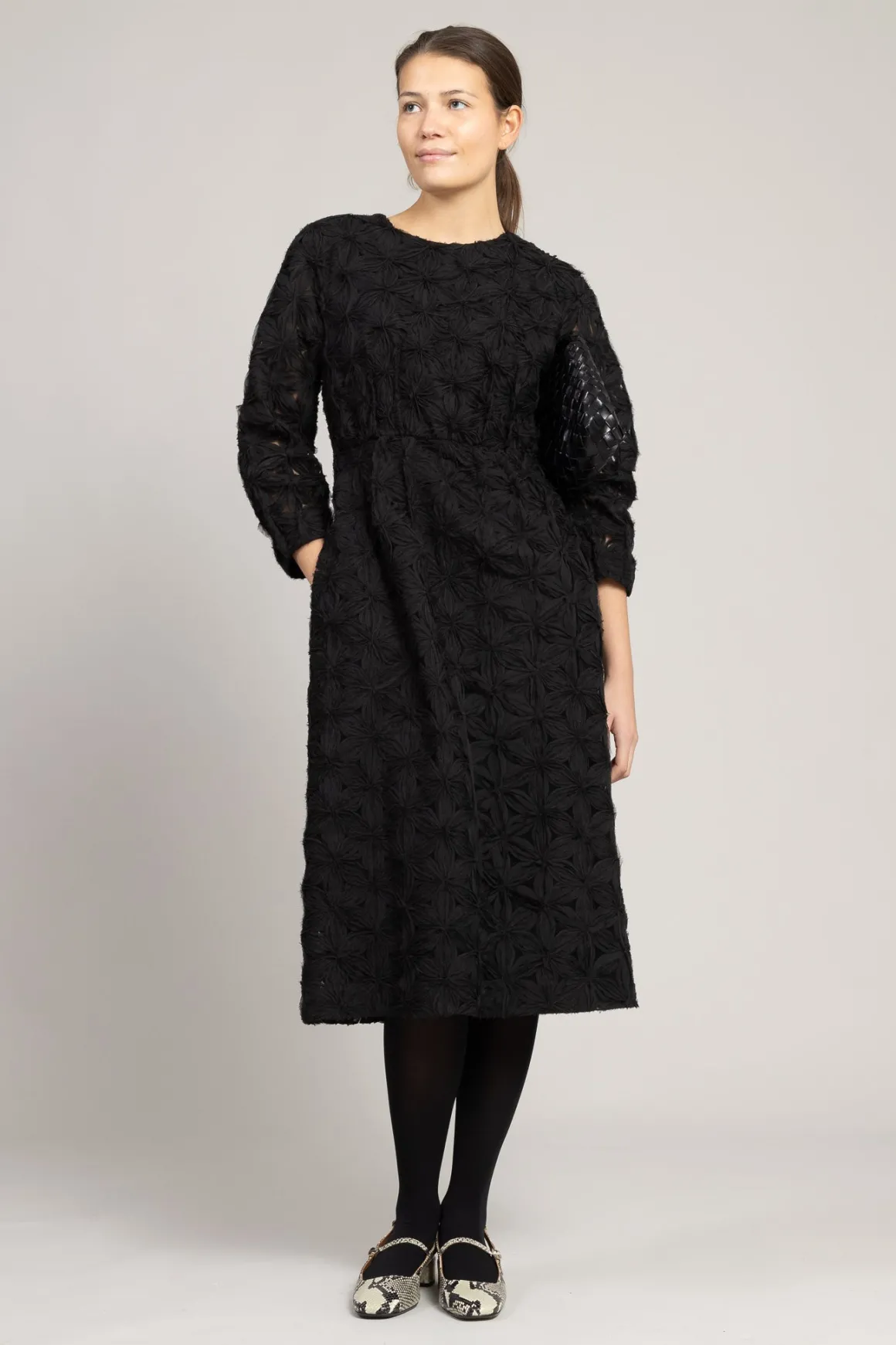 Fantastisk kjole fra Odeeh som er perfekt til en kveld hvor du vil pynte deg litt ekstra. Den unike 3D-blomsterteksturen gjør kjolen til et skikkelig blikkfang. Myk underkjole sørger for komfort, mens gjennomsiktige ermer gir en lett og luftig følelse. Rund hals og trekvartlange ermer gjør den enkel å style opp med høye hæler eller bruke med enkle sko for en mer avslappet look. En kjole som garantert får deg til å føle deg ekstra fin!