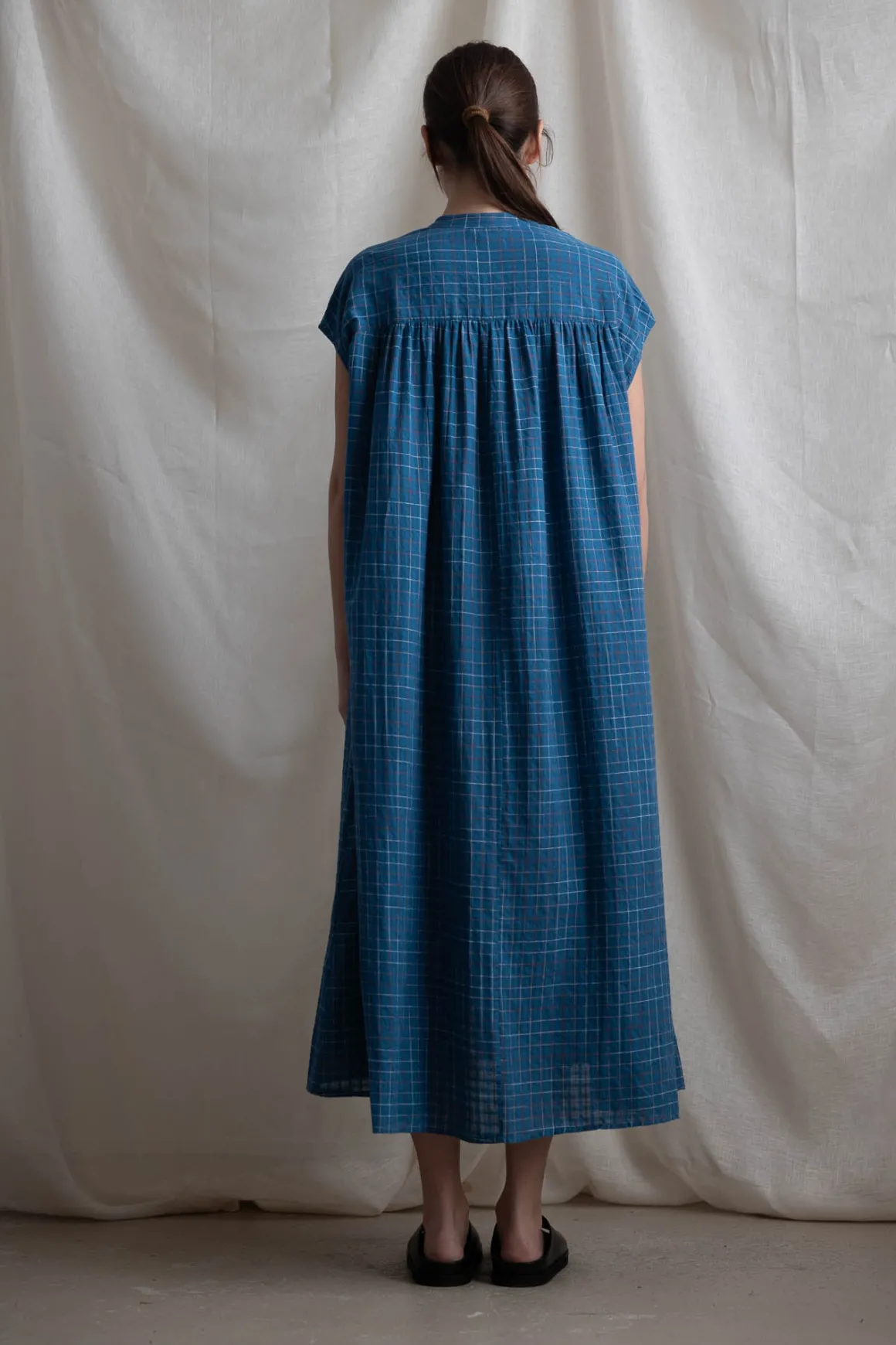 Kjolen Maxime fra det franske merket Moismont er en ermeløs kjole med en løs og ledig passform. Den har rynker ved halsen og i ryggen, noe som gir et mykt fall. Kjolen kan enten knytes i livet for en mer markert silhuett eller brukes uten belte for et avslappet uttrykk. Den har en rund hals, synlig knappestolpe og perlemorsknapper, og stoffet er vevd for hånd. Et lett og luftig plagg som passer like godt til varme sommerdager som til roligere øyeblikk hjemme.