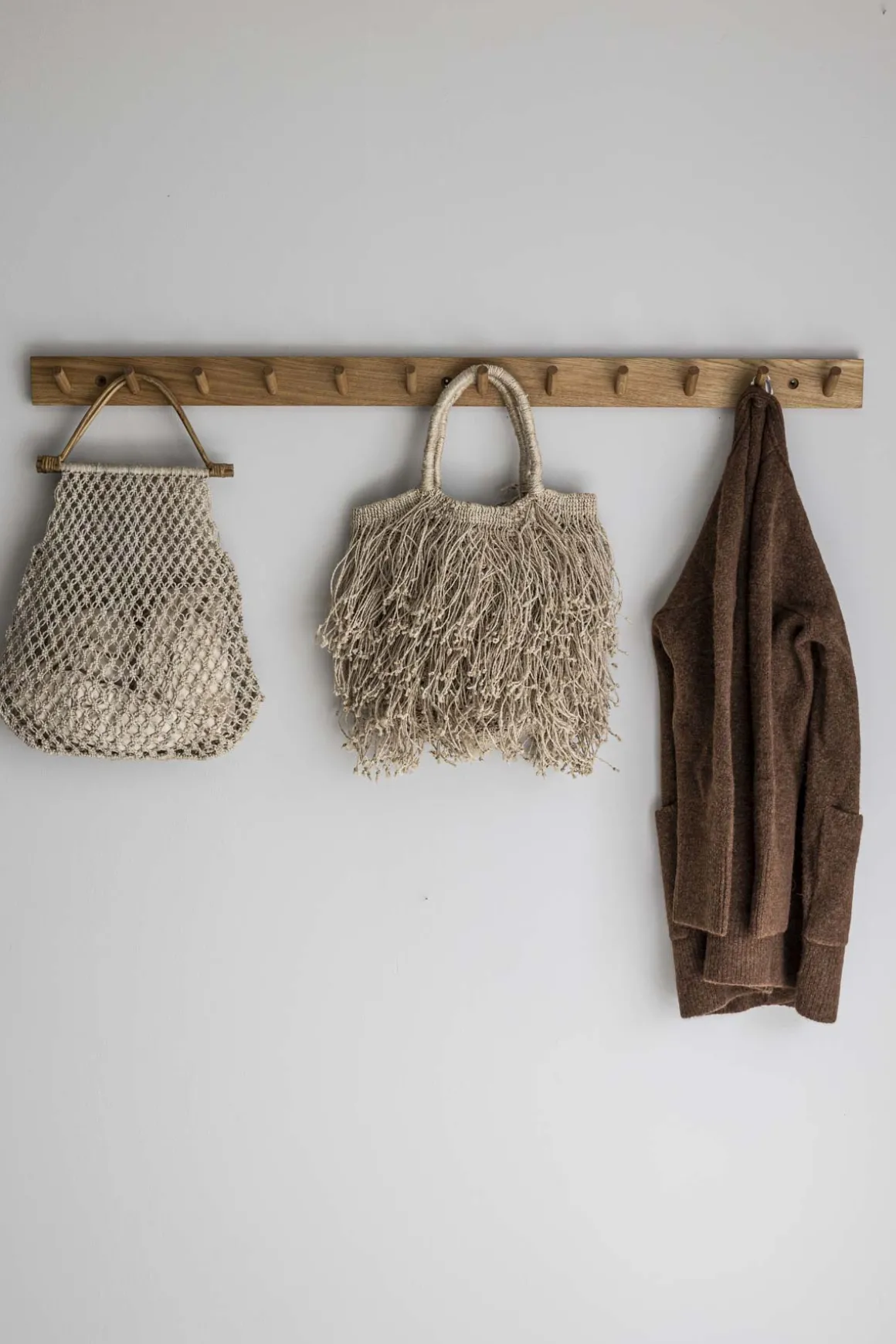 Minimalistisk og praktisk knaggrekke med 12 knagger fra tyske Raumgestalt i 100% eik. Bruk den i gangen, på kjøkkenet eller på soverommet. Passer like godt hjemme som på hytta.
