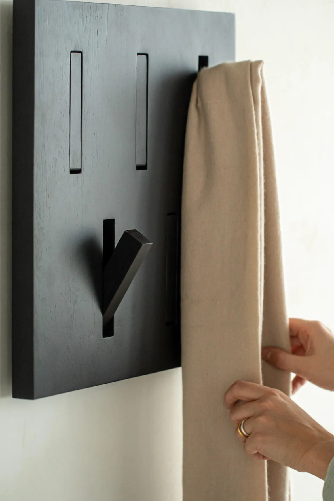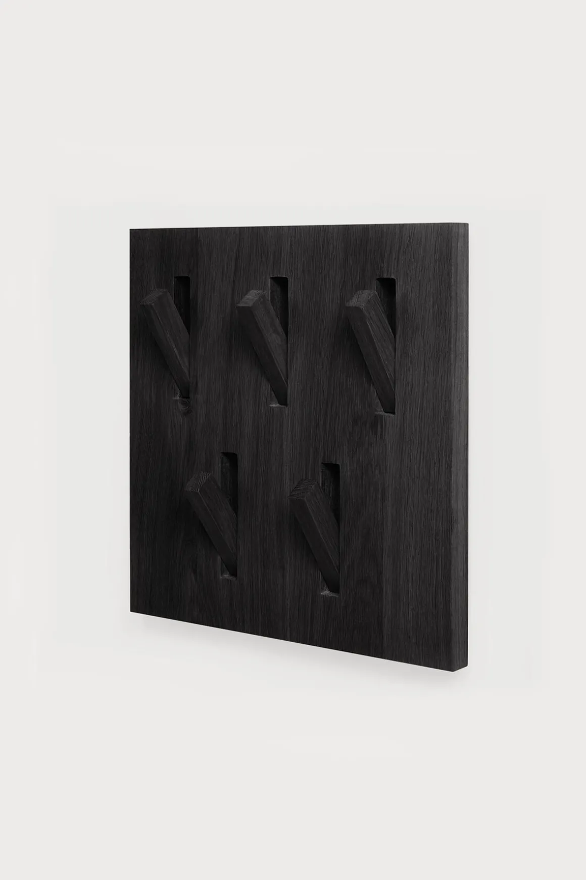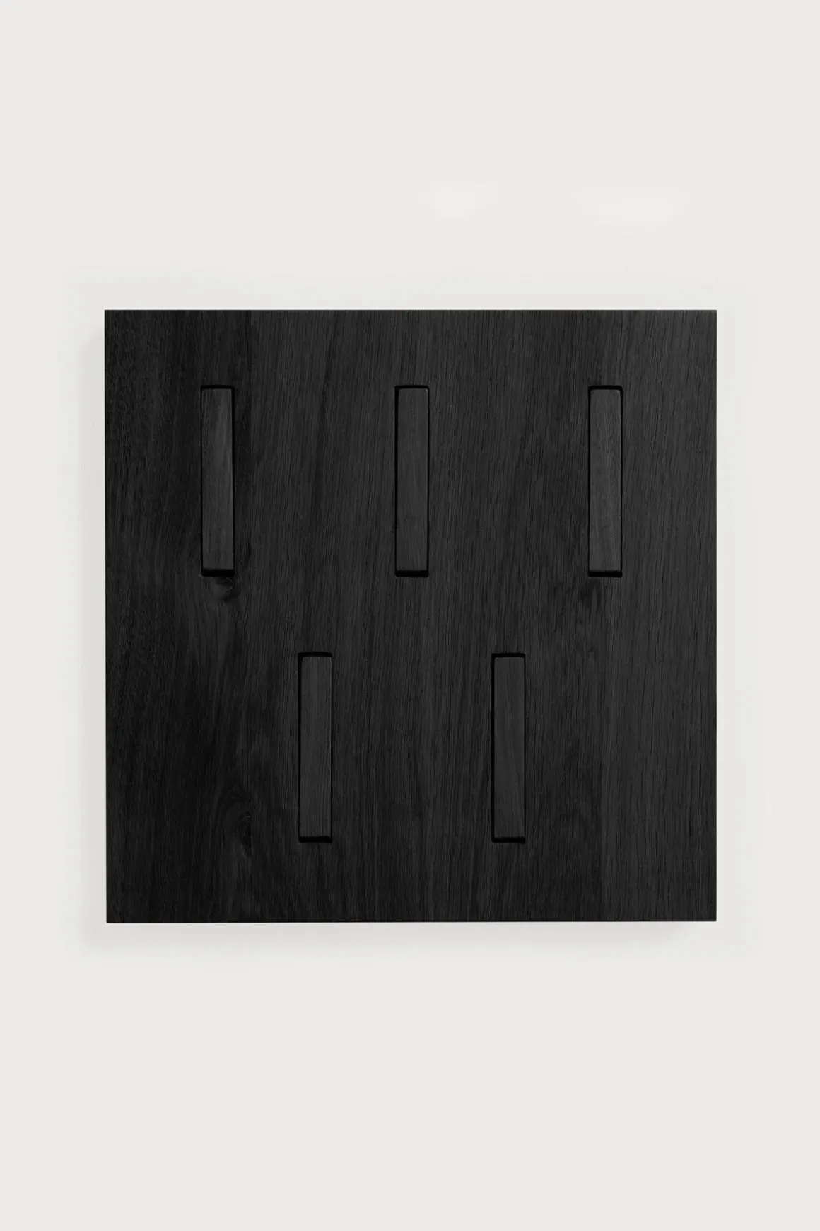 Utilitile knaggrekken fra Ethnicraft er noe litt utenom det vanlige og kombinerer form og funksjon perfekt. Denne minimalistiske knaggrekken i solid, sort eik er et annerledes alternativ den tradisjonelle knaggrekken og vil heve helhetsinntrykket i gangen flere hakk. I tillegg får du optimalisert veggplassen slik at du får plass til å henge opp flere kåper, jakker og vesker og annet tilbehør. Hvis Utilitile ikke er i bruk, kan du bare dytte knaggene inn slik at det blir en slett, jevn flate. Finnes også i naturlig eik.