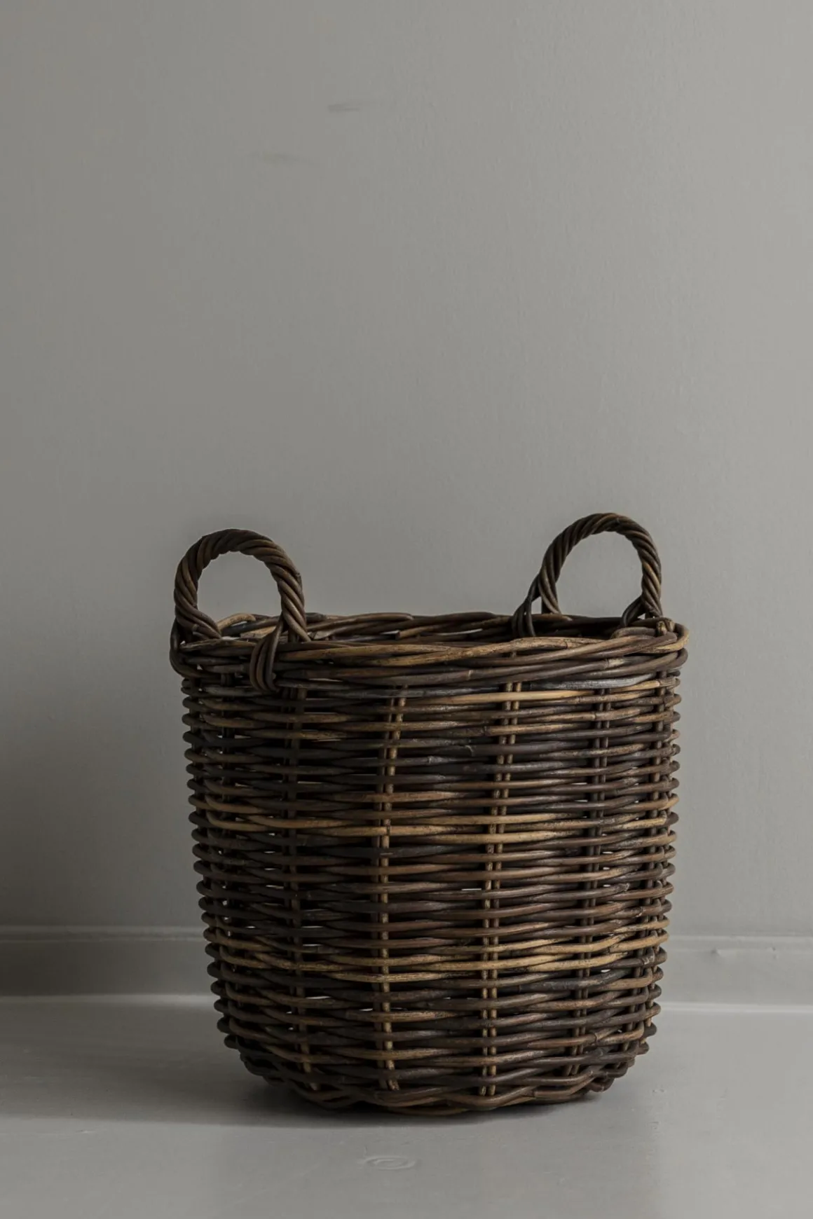 Praktisk og romslig oppbevaringskurv i rotting fra svenske Bruka Design. Man kan vel aldri få nok oppbevaringsplass og det samme kan sies om oppbevaringsbokser- og kurver. Kurven er rund og stabil med to solide håndtak slik at man enkelt kan flytte den rundt i huset der den trengs. Bruk den til barneleker, pledd og tekstiler i stua, strikketøy, pinner og ved eller andre ting du trenger stuet bort. Denne varianten kommer i to størrelser.
