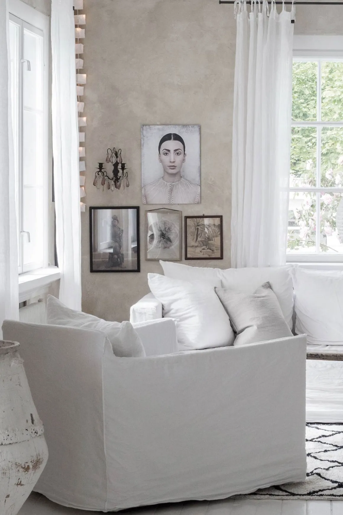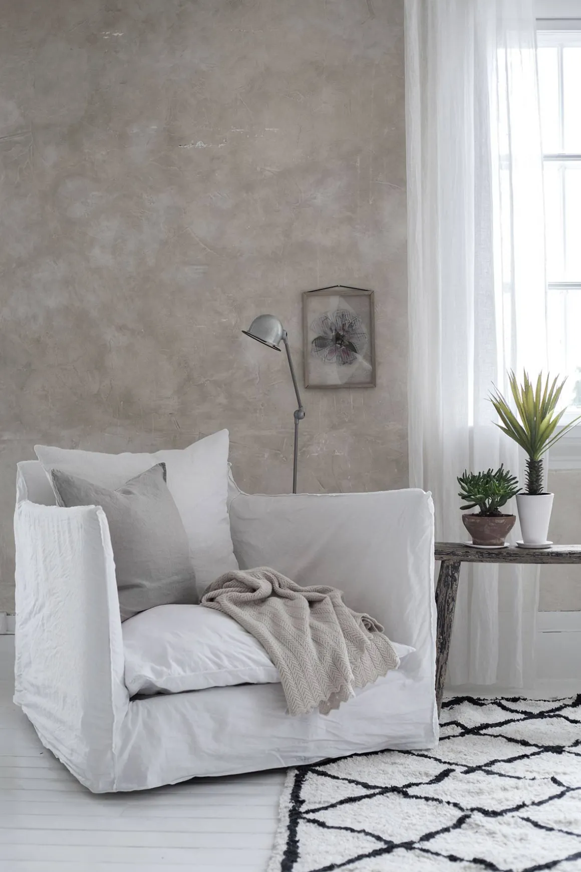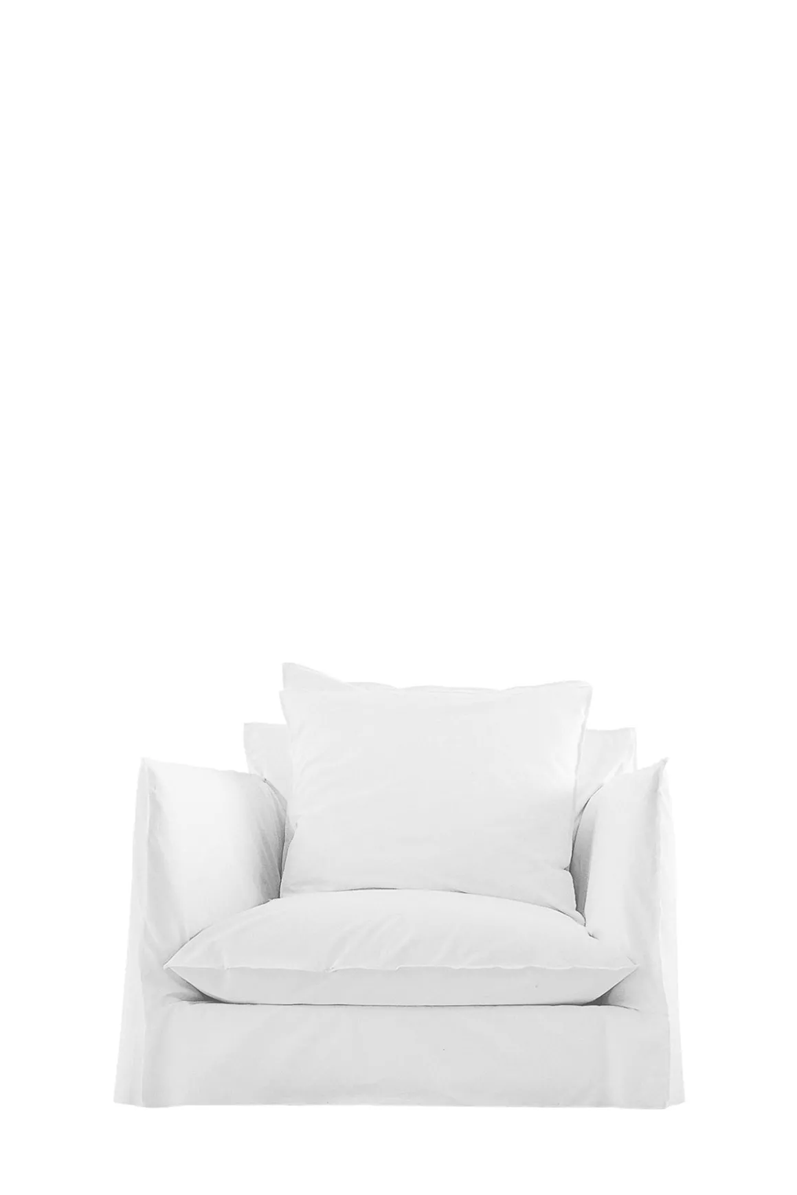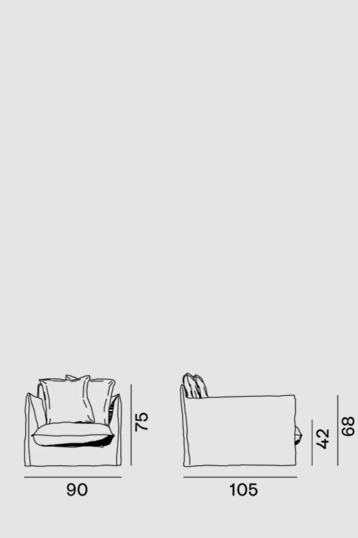 GHOST 01 lenestol fra italienske Gervasoni, designet av den prisbelønte designeren Paola Navone. Ghost 01 er en romslig og herlig lenestol med et bredt sete, solid treramme og avtagbart trekk. Det følger også med to deilige ryggputer til stolen, begge 50×50 cm. Fantastisk god å sitte i, og ikke minst behagelig å hvile øynene på – den perfekte stolen til avslapning som passer i alle husets rom. Ghost-serien har et bredt utvalg spisestoler, lenestoler, sofaer, puffer og andre møbler i ulike moduler og størrelser som kan kombineres slik at det passer perfekt til ditt hjem. Ghost skiller seg fra tradisjonelle sofaer med sitt avslappede, men samtidig unike design. Navnet kommer av det spøkelsesaktige, løstsittende trekket som er vakkert drapert rundt hvert enkelt møbel. Bolina-favoritt gjennom mange år!