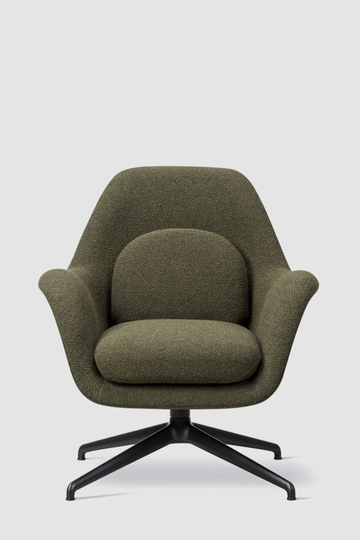 Swoon Petite 1776 svingstol har ben i sort stål og er utført i det eksklusive stoffet Carlotto 900, et slitesterkt og mykt stoff i mørkegrønn ullblanding med himmelsk bouclé tekstur. Med det enestående trekket som smelter sammen armlenene, setet og ryggen, i tillegg til støttende, myke puter, har du en moderne og skulpturell stol som passer i alle hjem. Swoon Lounge Petit er en nettere og hakket mer oppreist versjon av sin ikoniske forgjenger Swoon Lounge. Petite versjonen inviterer til total avslapning med sitt imøtekommende design og optimale sittekomfort. Dette er en skandinavisk klassiker du vil få glede av i stuen, på kontoret eller ved spisebordet. I tillegg til diverse tekstiler kan du velge mellom baser i flere materialer og stiler. Kom gjerne innom Bolina på Stabekk, hvor vi står klare med tekstilprøver og kan hjelpe deg med å designe din helt egen ‘drømme Swoon’.
