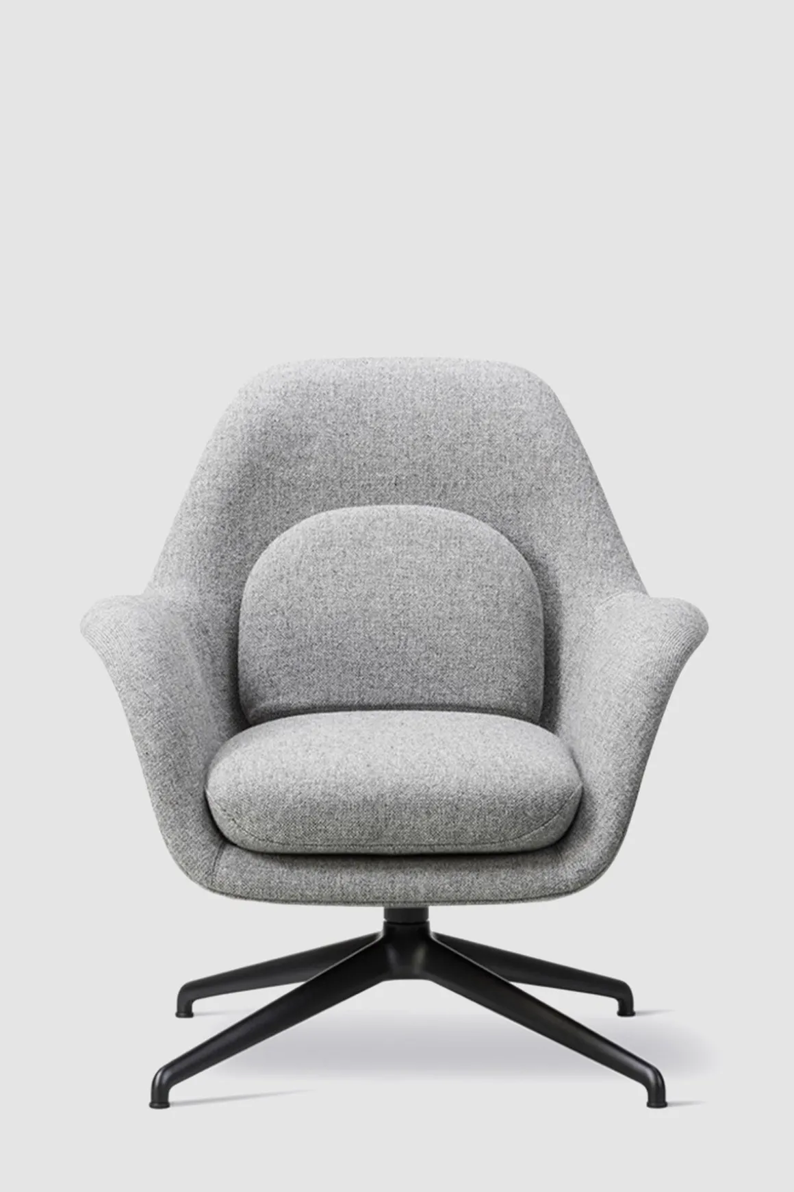 Swoon Petite 1776 svingstol har ben i sort stål og er utført i det eksklusive stoffet Hallingdal 130, et slitesterkt og mykt stoff i lysegrå ull- og viskoseblanding. Med det enestående trekket som smelter sammen armlenene, setet og ryggen, i tillegg til støttende, myke puter, har du en moderne og skulpturell stol som passer i alle hjem. Swoon Lounge Petit er en nettere og hakket mer oppreist versjon av sin ikoniske forgjenger Swoon Lounge. Petite versjonen inviterer til total avslapning med sitt imøtekommende design og optimale sittekomfort. Dette er en skandinavisk klassiker du vil få glede av i stuen, på kontoret eller ved spisebordet. I tillegg til diverse tekstiler kan du velge mellom baser i flere materialer og stiler. Kom gjerne innom Bolina på Stabekk, hvor vi står klare med tekstilprøver og kan hjelpe deg med å designe din helt egen ‘drømme Swoon’.