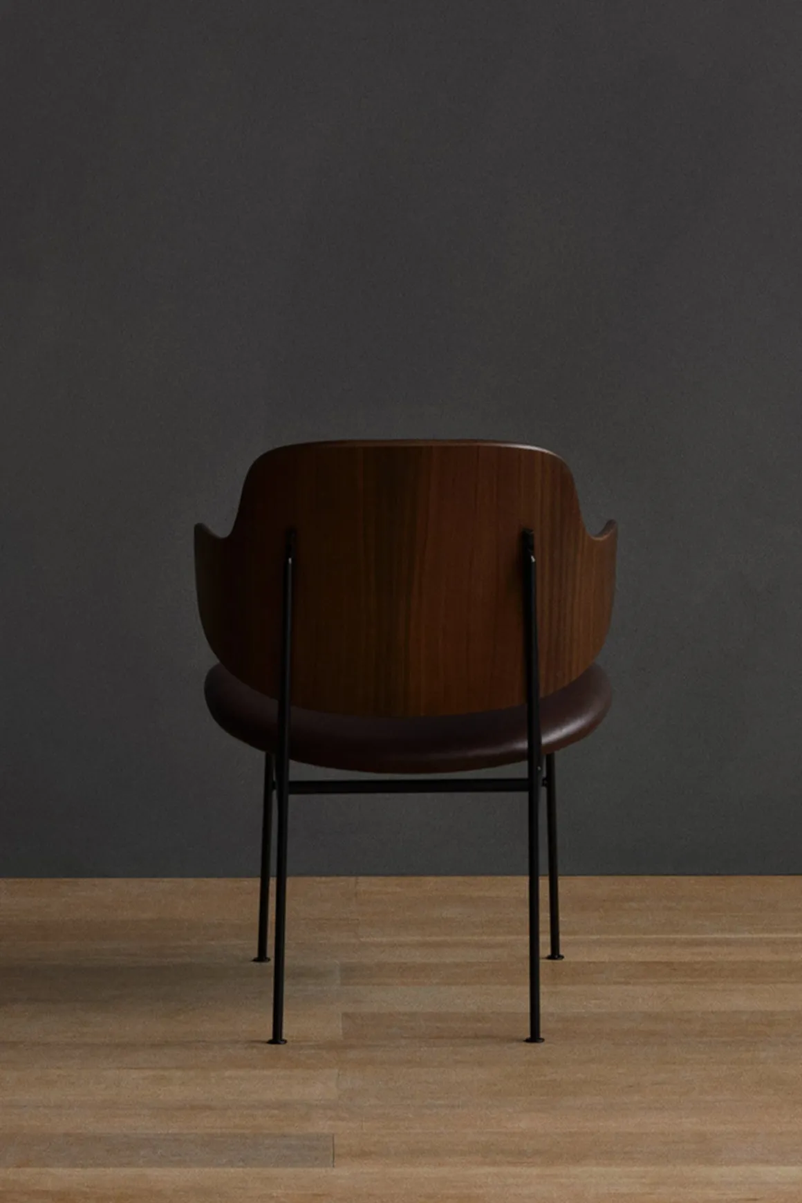 - Materiale: Oljet valnøttfinér | Pulverlakkert stål | Buet kryssfinér | Dakar 329 skinn | Skumpolstring