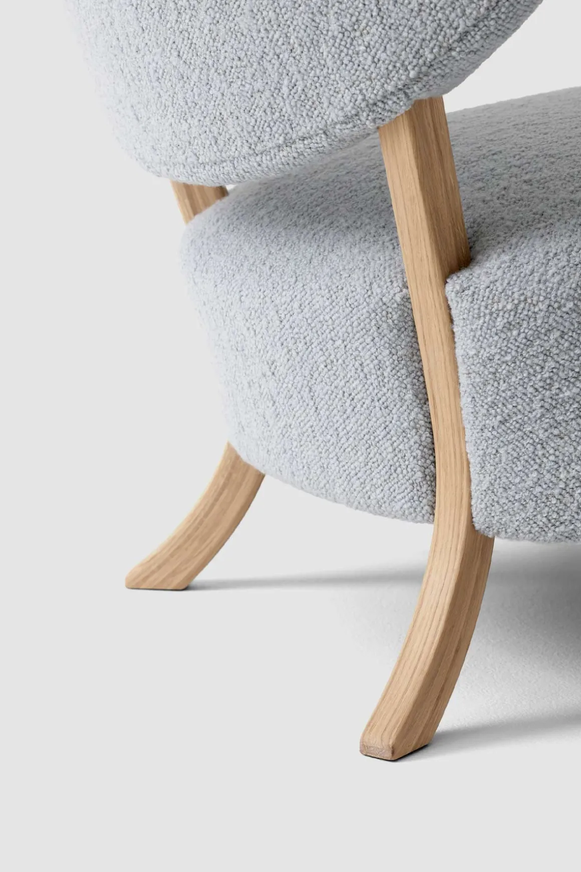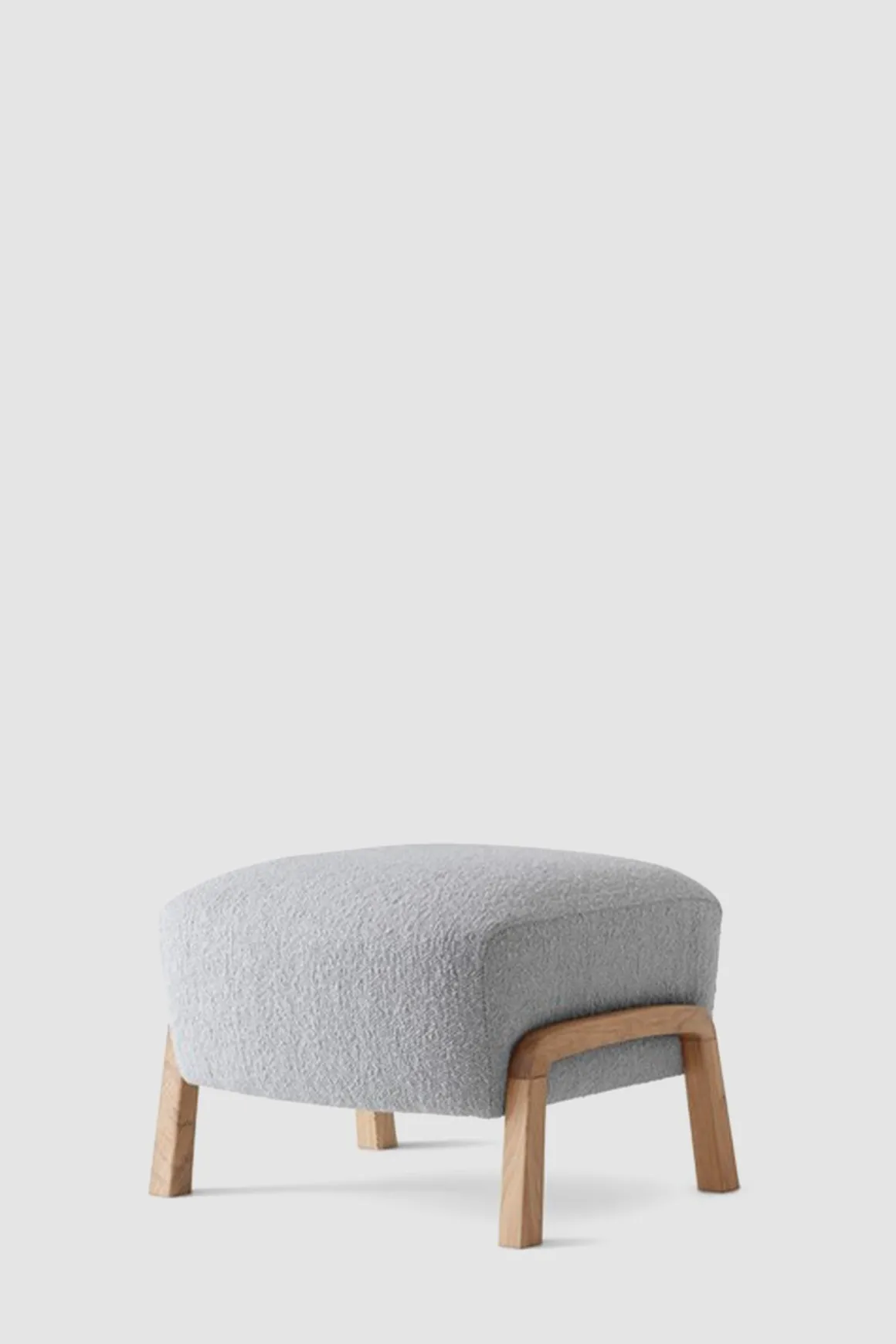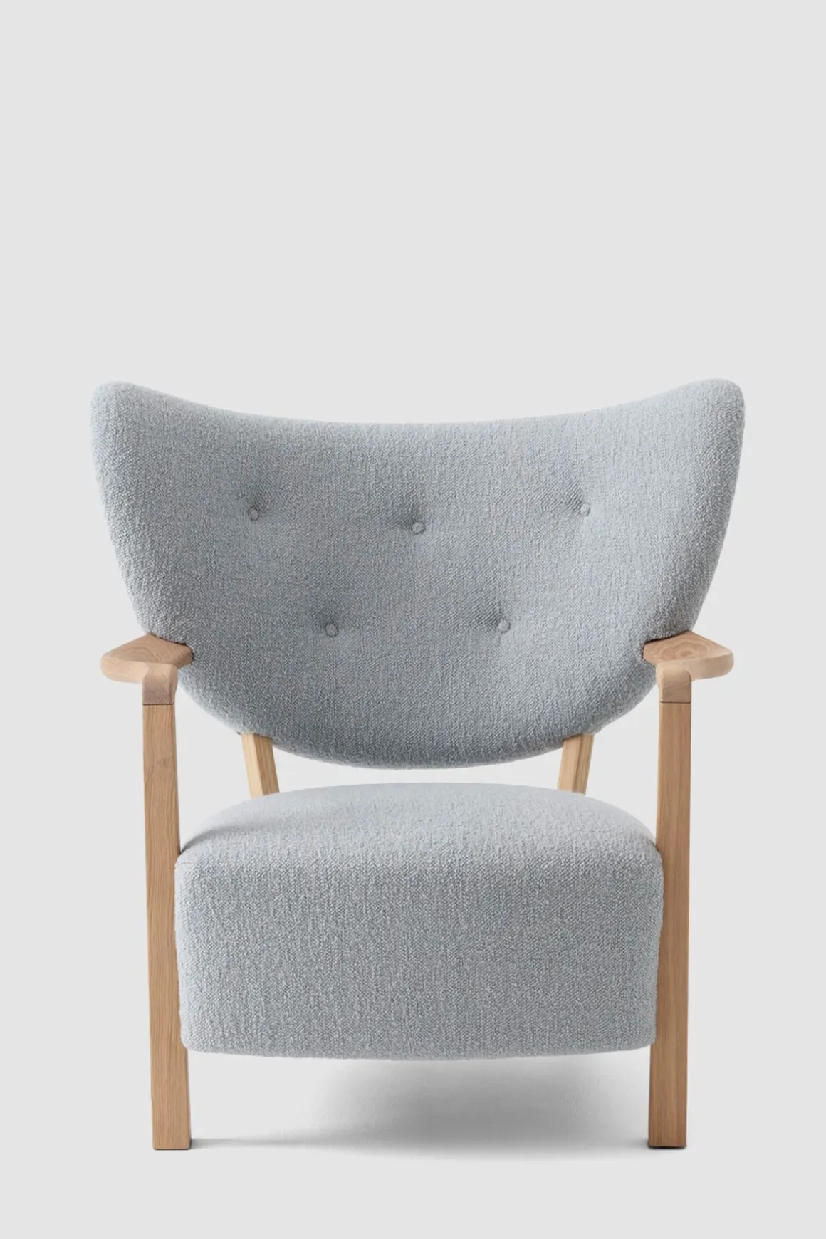 Finn roen med Wulff lenestol og puff fra u0026amp;Tradition. Wulff er en polstret loungestol som hyller de håndlagde designene fra 1930-tallet. Stolrammen er laget av massiv bøk og kryssfiner og deretter dekket med HR-skum og polyestervatt. Bena i heltre eik er dreid, CNC-frest og oljet. Stolen har et luksuriøst, mykt trekk som dekker setet og ryggstøtten. Stolen er trukket i stoffet Karandash; et tettvevd boucléstoff i ull og bomull, med en myk følelse og moderne personlighet. Karandash er en matt versjon av Karakorum, og stoffet egner seg til stoler som er beregnet for intensiv bruk. Wulff står for overlegent håndverk og enestående komfort. Loungestolens arkitektoniske form vil gi et stilig uttrykk til ethvert interiør og vil være et velkomment møbel i stua eller på soverommet. Den tilhørende puffen er håndlaget med ben av solid eik og kommer i samme møbeltrekk som loungestolen. Bruk den enten som fotskammel til Wulff-stolen eller som en sjarmerende loungekrakk alene.