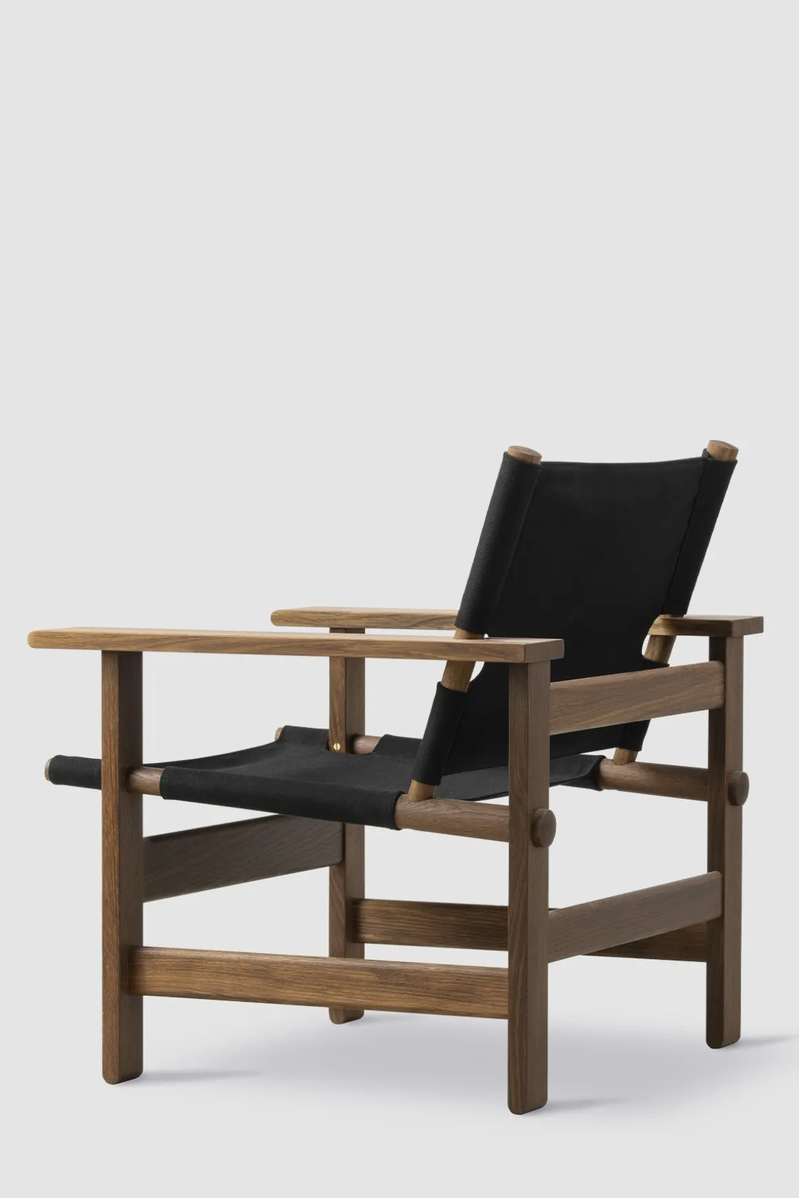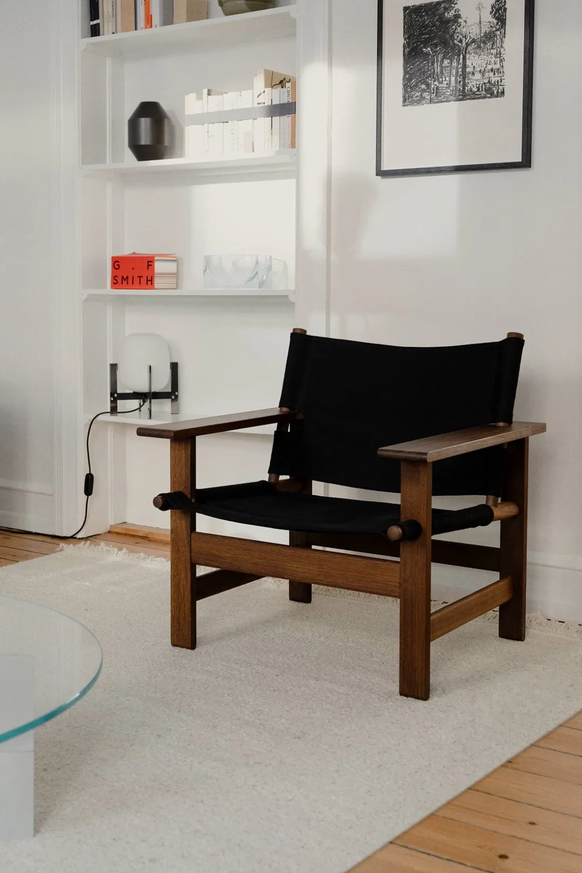 Canvas Chair fra Fredericia, designet av Børge Mogensen. Canvas Chair var et av de siste møblene Mogensen tegnet før hans død i 1972, og har siden forblitt i arkivene – helt til nå. Stolen har et funksjonelt design med fokus på enkle, strukturelle former. Den er laget av naturlige materialer med flatt canvas som sete og rygg, og horisontale og vertikale linjer av røkt, oljet eik til rammen. Kombinasjonen gir en fin kontrast og en naturlig følelse av balanse. Canvas-stolen vil passe inn overalt med sitt uformelle design og naturlige materialer. Den er både moderne og klassisk på samme tid, og vil være en stol som kan gå i arv i generasjoner. Sittepute må kjøpes utenom.
