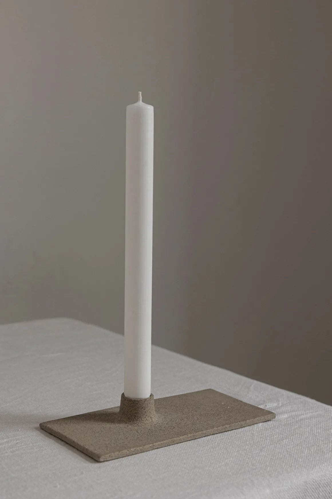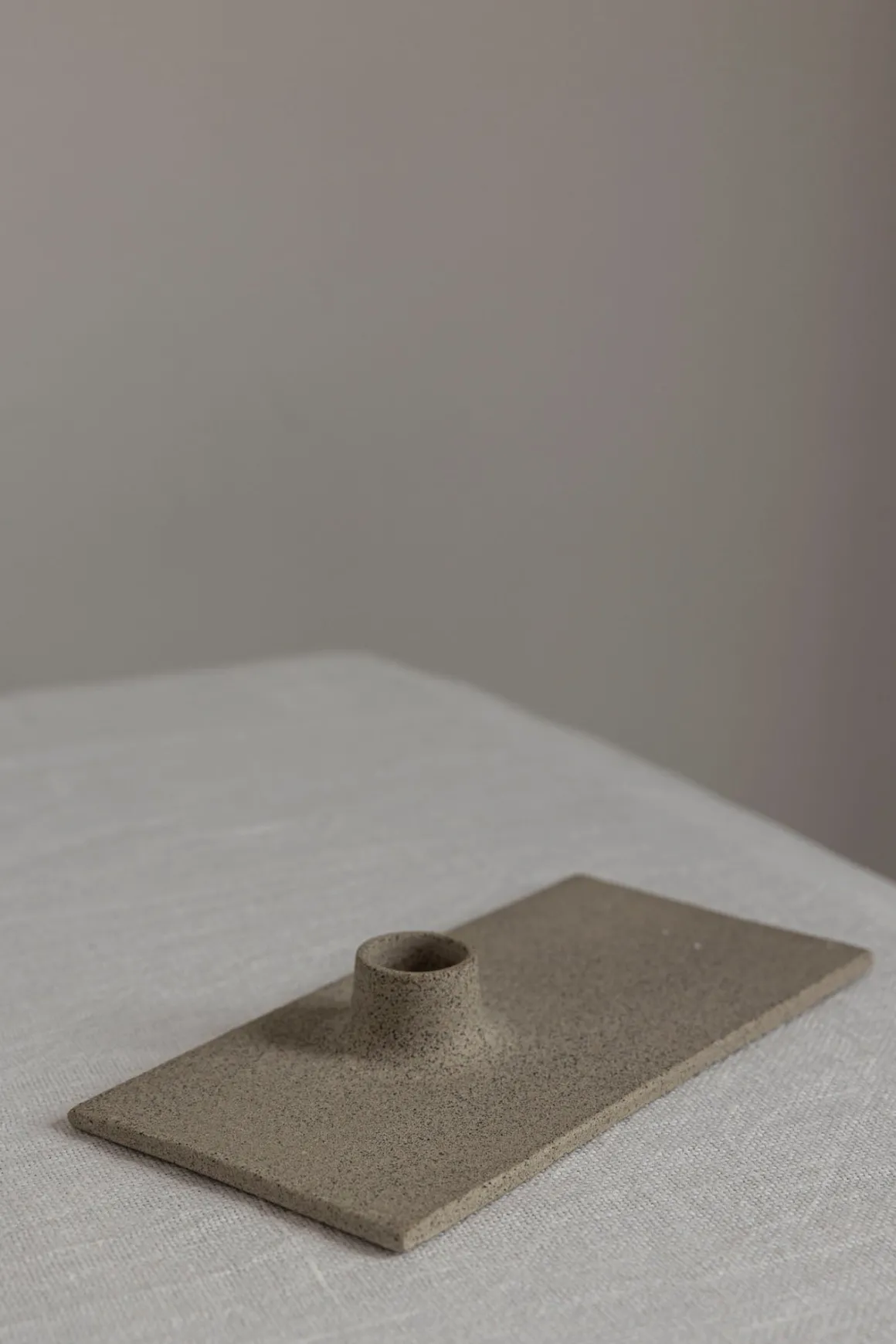 Flyt lysestake i grått fra den norske keramikeren Helene Jørgensen. Lysestaken er håndlaget og er designet for å fremheve en avslappet stemning og står godt alene i interiøret. Siden Flyt er håndlaget og unik, vil naturlige variasjoner forekomme.