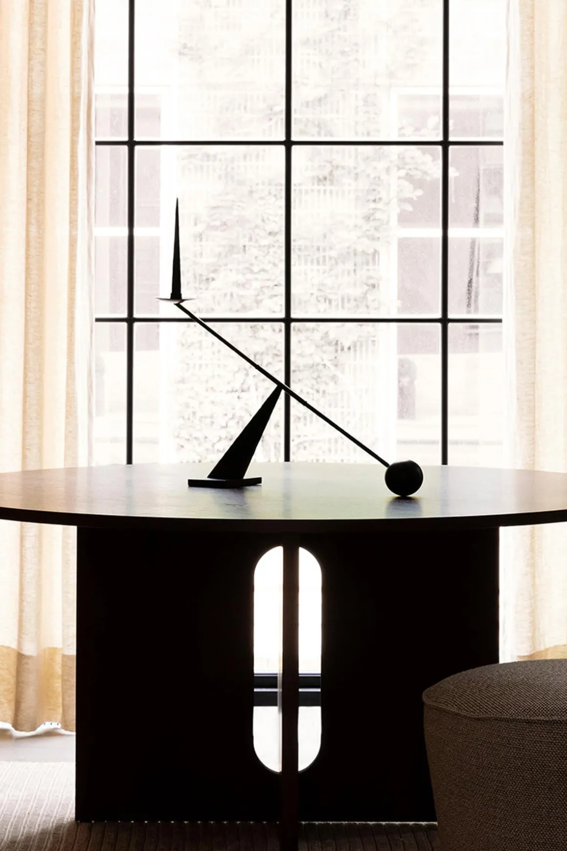 Interconnect kan vel trygt sies å være mer enn en beskjeden lysestake, og er et dristig og lysende midtpunkt med overdrevne proporsjoner. Designet av Colin King er Interconnect både en kilde til koselig, levende lys, samtidig som konstruksjonen er en skulptur i seg selv. Preget av sin villedende, enkle geometriske form: en kule, en vinkel og en linje, som forenes ved å skape et unikt design. Tilgjengelig i polert messing eller sortmalt stål. La den stå framme på spisebordet eller ha den stående på ett konsollbord eller en hylle.