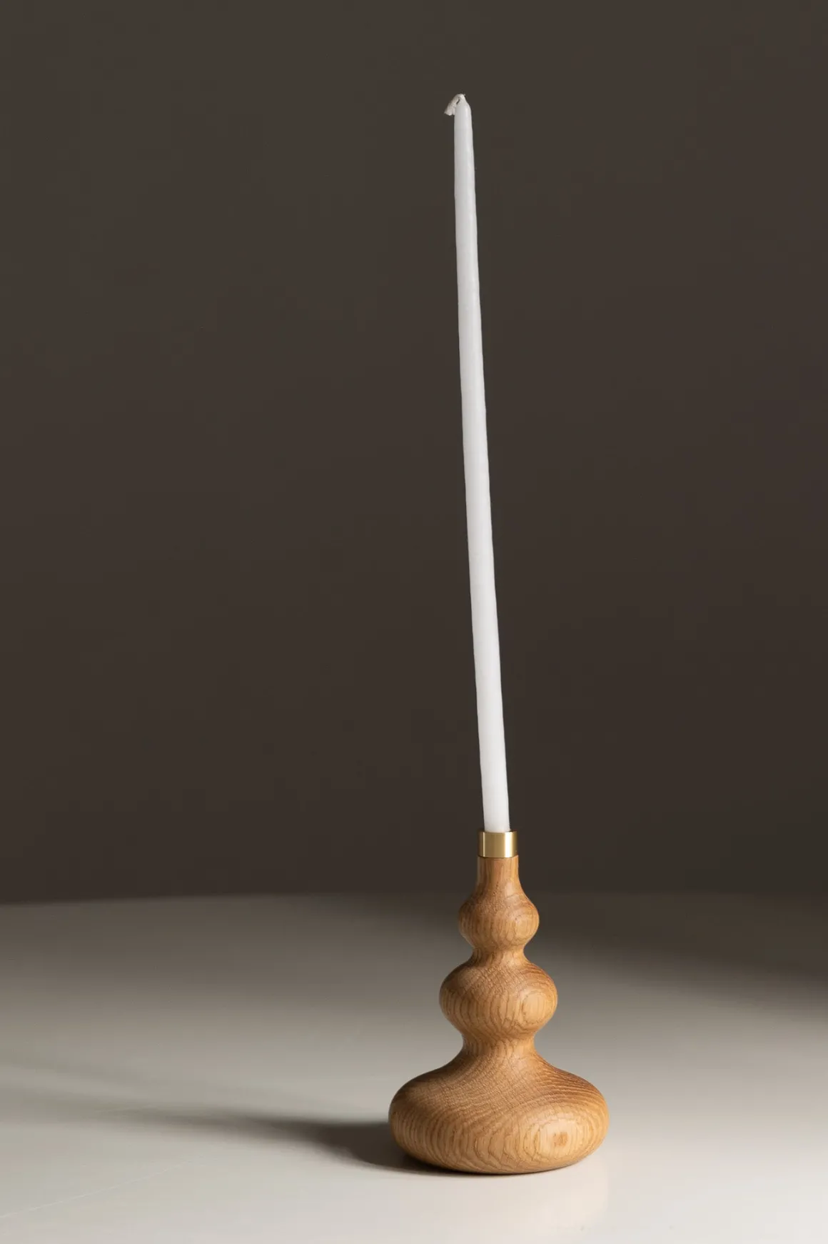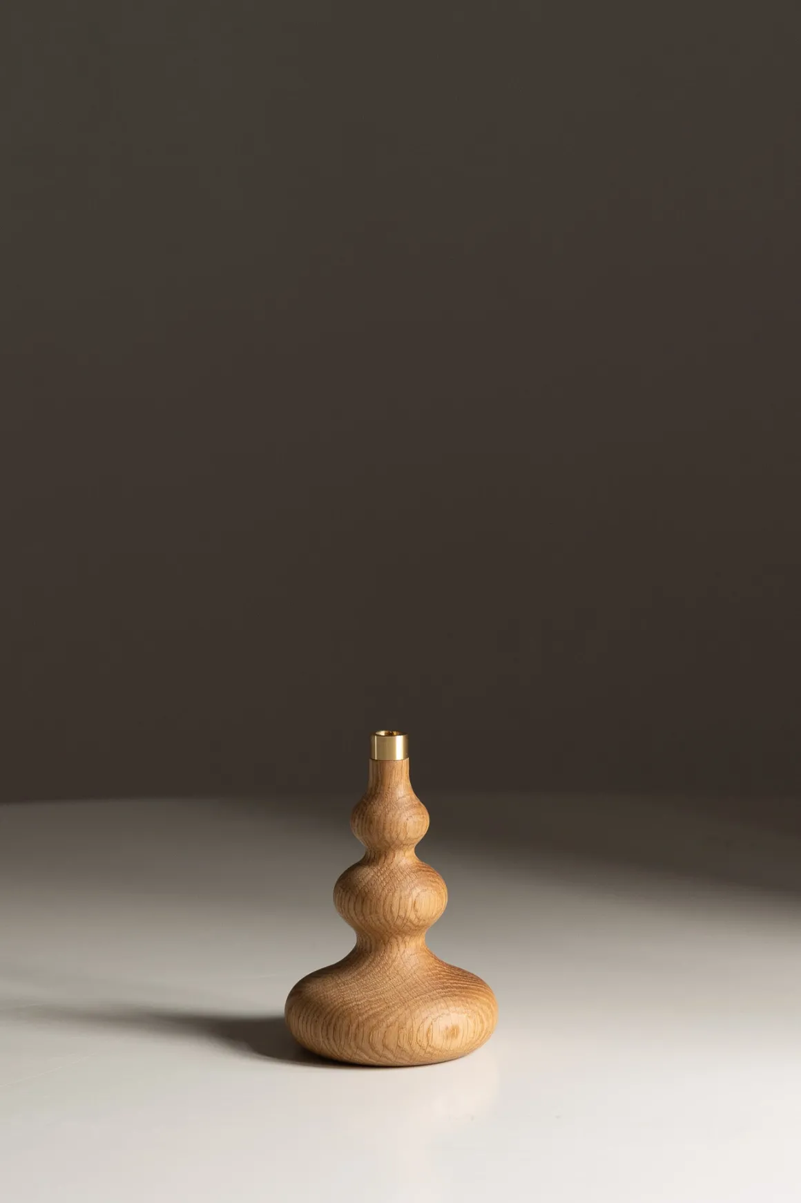 Lysestake i oljet eik fra OVO Things som bringer varme og sjarm til hjemmet. Lysestaken er hånddreid av eik på et snekkerverksted i Litauen, laget av treverk som er rester fra møbelproduksjon. De naturlige variasjonene i treets farge og mønster gir hver lysestake sitt unike preg. Dette er en nydelig detalj som skaper en koselig stemning i hjemmet, enten alene eller sammen med flere. Passer til lys med diameter på 0,5-1 cm.