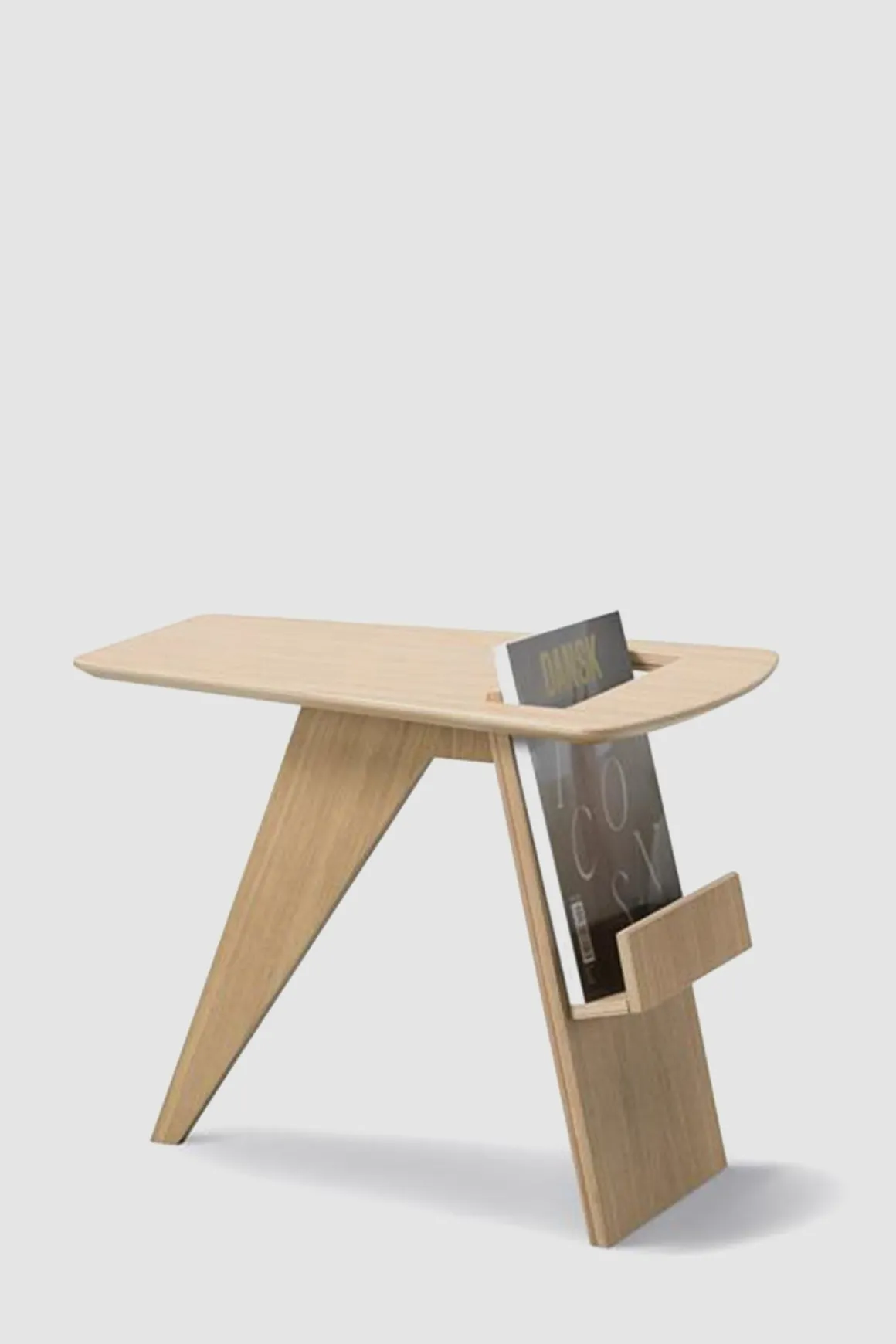 Magazine Table ble designet av danske Jens Risom i 1949. Bordet gjenspeiler Risom’s tanker rundt at kjernen til god design er komfort, varmen fra treverk sammen med en grasiøs stil. I lakkert eik, kombinasjon av myke linjer og nøye utformede utskjæringer, er dette et perfekt sidebord med plass til lesestoff og en kaffekopp. En virkelig designklassiker! Bordet passer fantastisk fint ved siden av Calmo Sofa eller Swoon stolene fra samme merke.