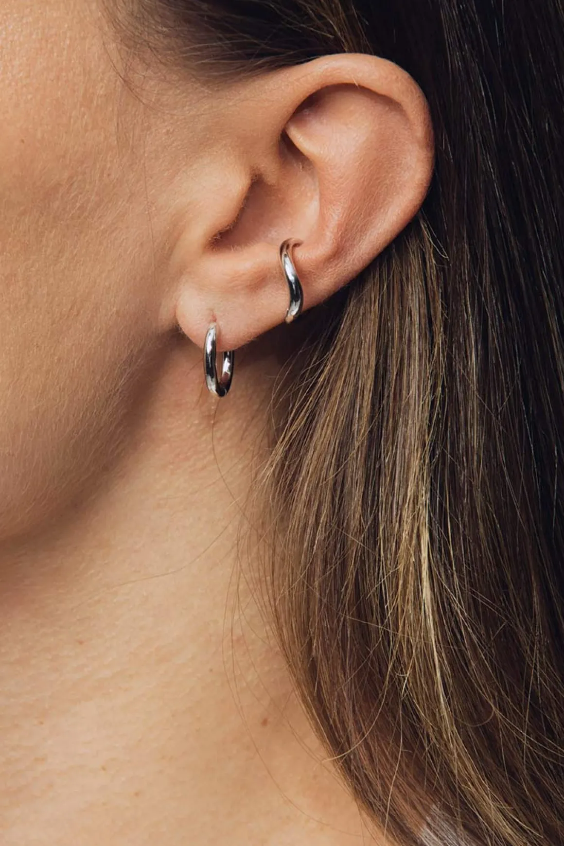 Slim Hoop er en strømlinjeformet ørering med et rent uttrykk som passer til alle anledninger. Den enkle formen gjør dem like fine alene og gir et tidløst preg til ethvert antrekk. Øreringene kan også brukes med charms for et personlig uttrykk. Over tid vil sølvet utvikle en unik patina der små merker og linjer forteller historien om et levd liv. Selges som par.