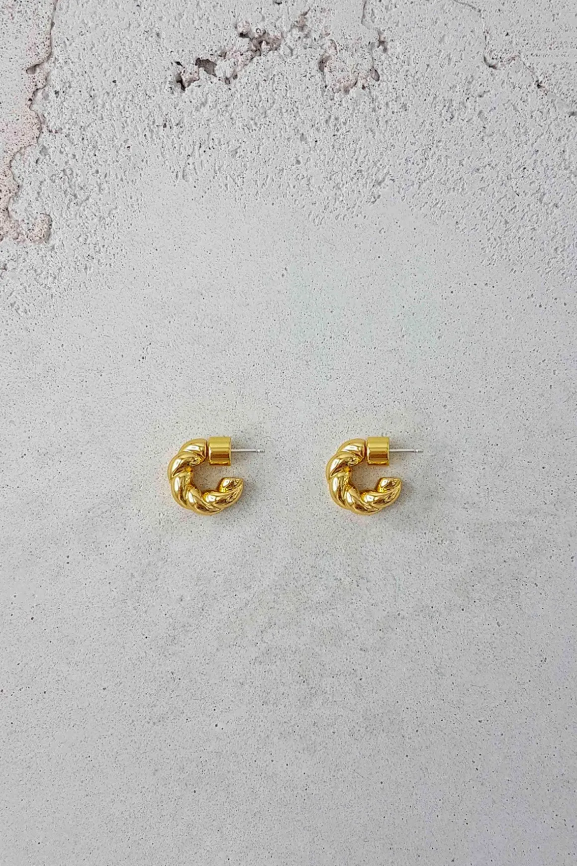 Pastry Hoops Small i 18k gullbelagt messing fra Romanin. Disse små, chunky øreringene vil bli dine nye favoritter til både hverdag og helg. Den vridde formen gir stilen det lille ekstra. Perfekt å kombinere med andre smykker fra samme merke.