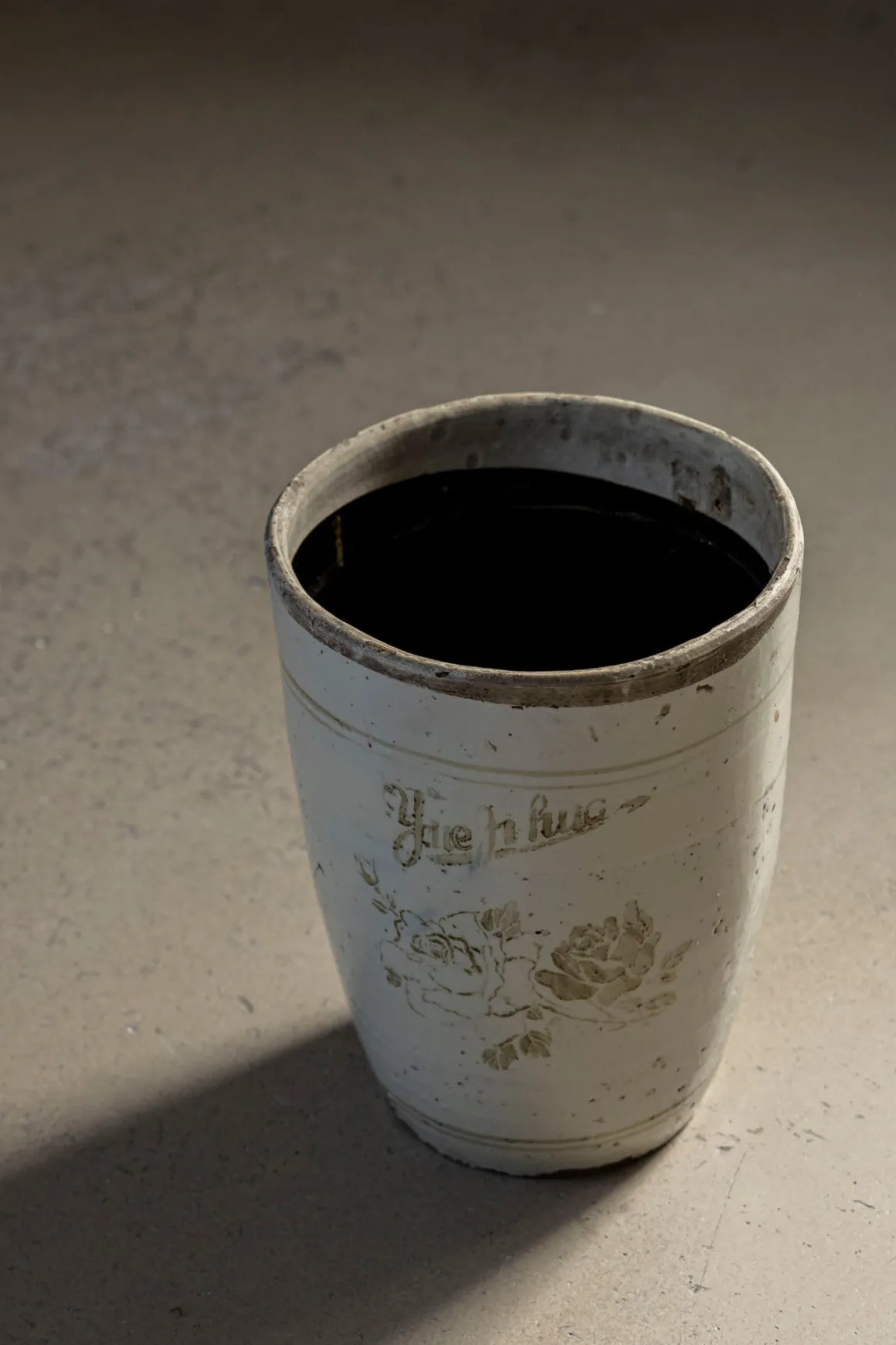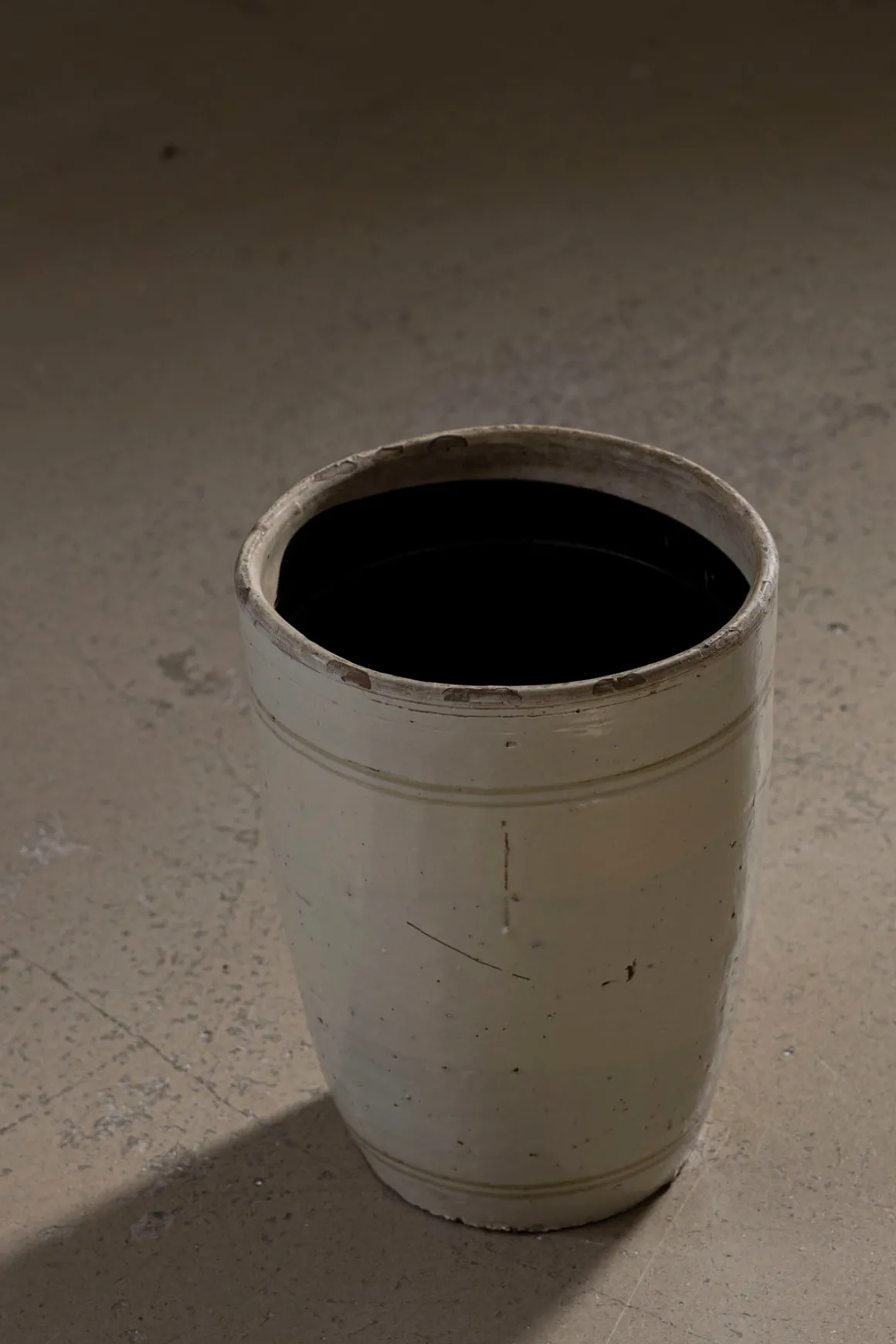 Vintage White potte fra Snowdrops. Potten er håndlaget, alle er unike og vil derfor variere noe fra bildet over. Potten kommer i en dus, vintage-hvit farge med dekorasjonsmaling i lysebrunt.
