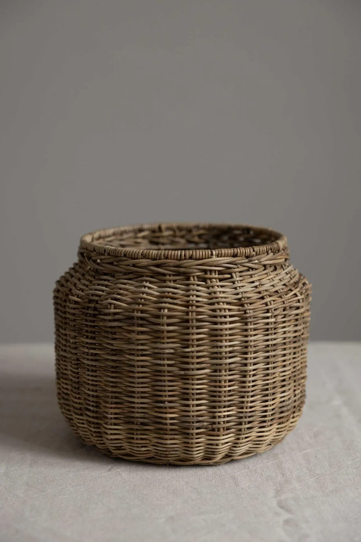 Klassisk potteskjuler fra håndflettet rotting fra svenske Bruka. Denne potteskjuleren måler 21 x 22 cm.