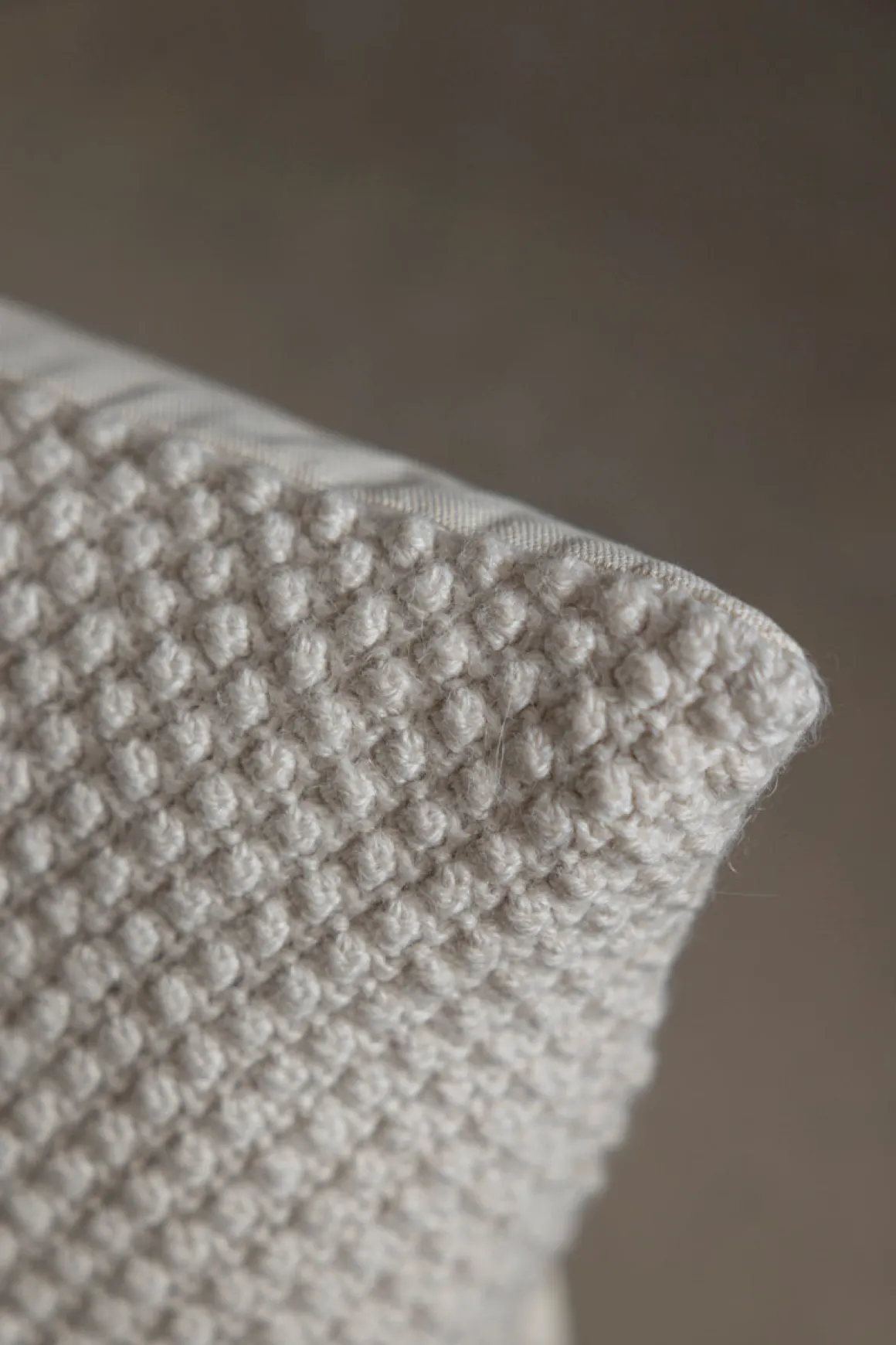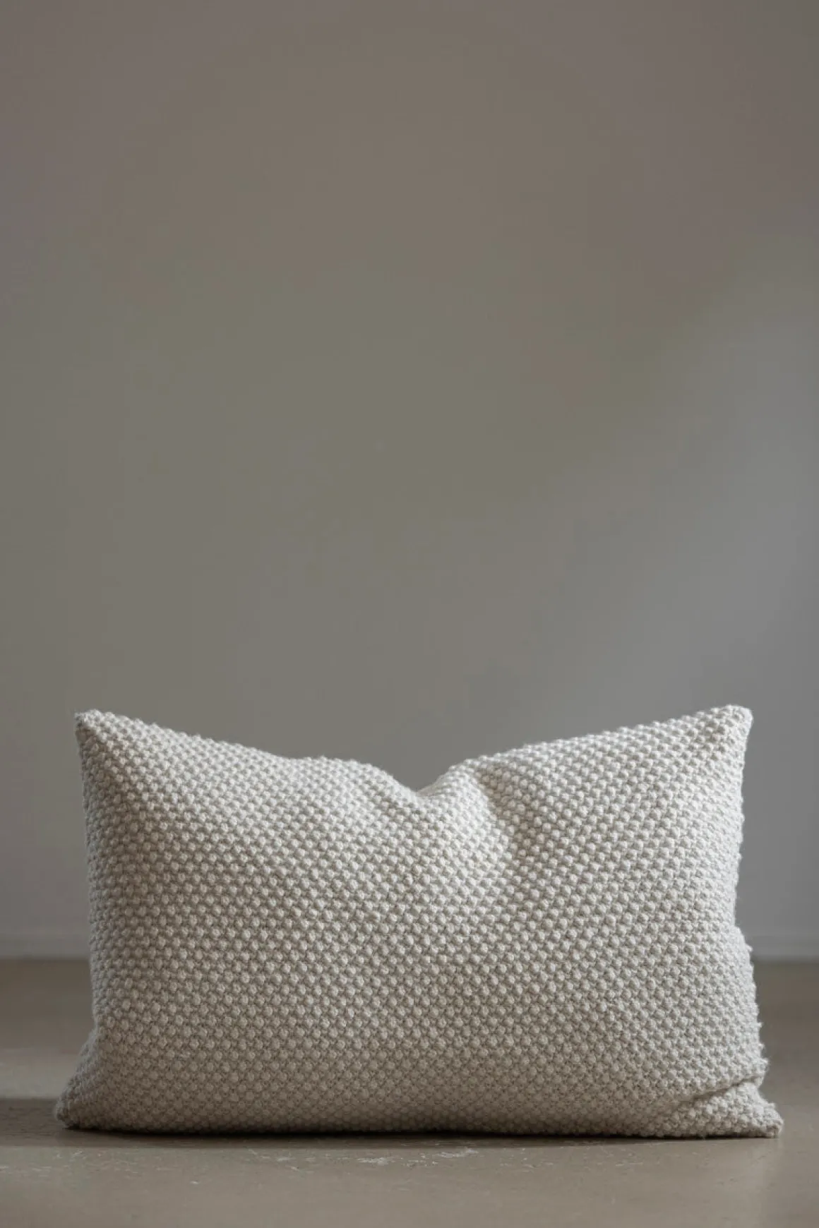 Heather pute i kremhvit fra Aiayu Domus. Puten har nydelig, myk perlestrikk i 100% ull fra babylama. Putetrekket er designet i Danmark og strikket for hånd i Bolivia. Initialene til den som har strikket puten står på baksiden. Baksiden er i kanvas-kvalitet og lukkes med skjult glidelås. Puten er svært slitesterk og nupper ikke.