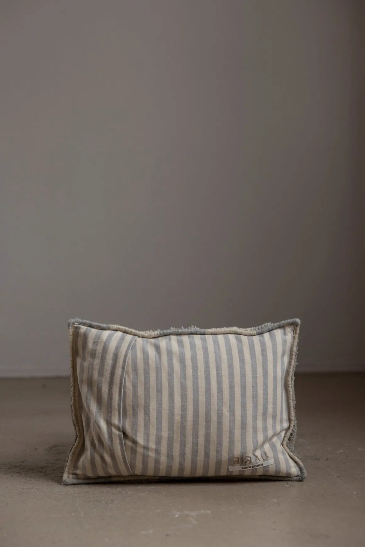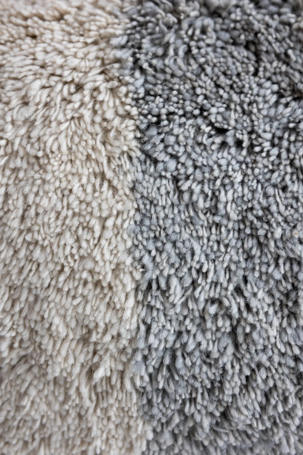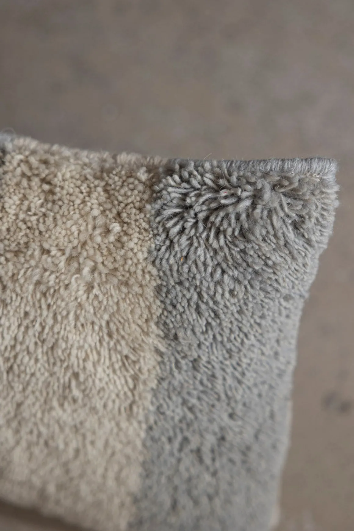 Nepal stripe puten fra Aiayu Domus er håndlaget i Kathmandu og har en organisk, raggete finish og et klassisk mønster. Hver pute er laget ved å binde håndfargede biter av tibetansk saueull inn i et stripet mønster, og deretter håndkutte ullen som et siste trinn for å få den fantastiske plysjoverflaten. Ullen er hentet direkte fra Tibet og bearbeidet lokalt på Aiayus verksted i Nepal. Baksiden er av økologisk bomull med en konvoluttlukking og håndbrodert Aiayu-logo. Puten er svært slitesterk og nupper ikke.
