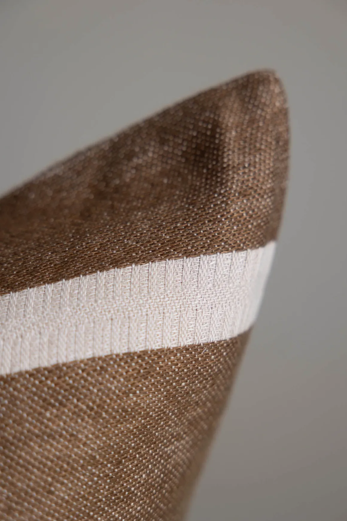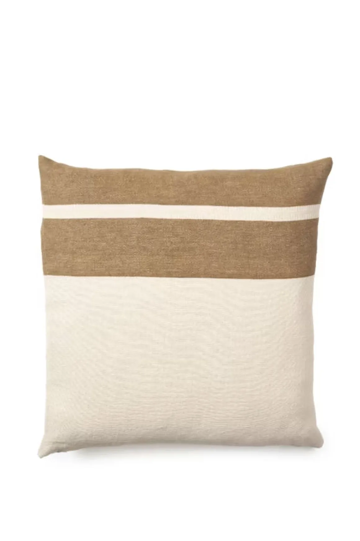 Putetrekket Julian fra Libeco er vevd i 100% lin med brede, dempede striper i gråblått, varm eik og støvet offwhite. Den vasket finishen gir en myk og avslappet følelse, mens det enkle uttrykket gjør putetrekket lett å kombinere med andre tekstiler i hjemmet. Like fint i sofaen som på sengen.
