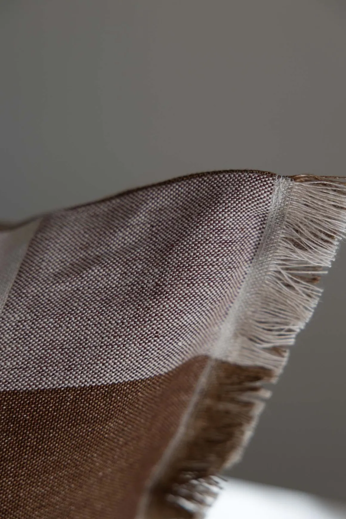 Maxine-putetrekket fra Libeco er et lekent innslag i interiøret med sitt store rutemønster og frynsete kanter. Fargepaletten består av varme toner som eik, rustbrun, blågrå og støvet offwhite, og det spesielle vevemønsteret gjør at hvert putetrekk får sitt eget uttrykk. Like fin i sofaen som på sengen.