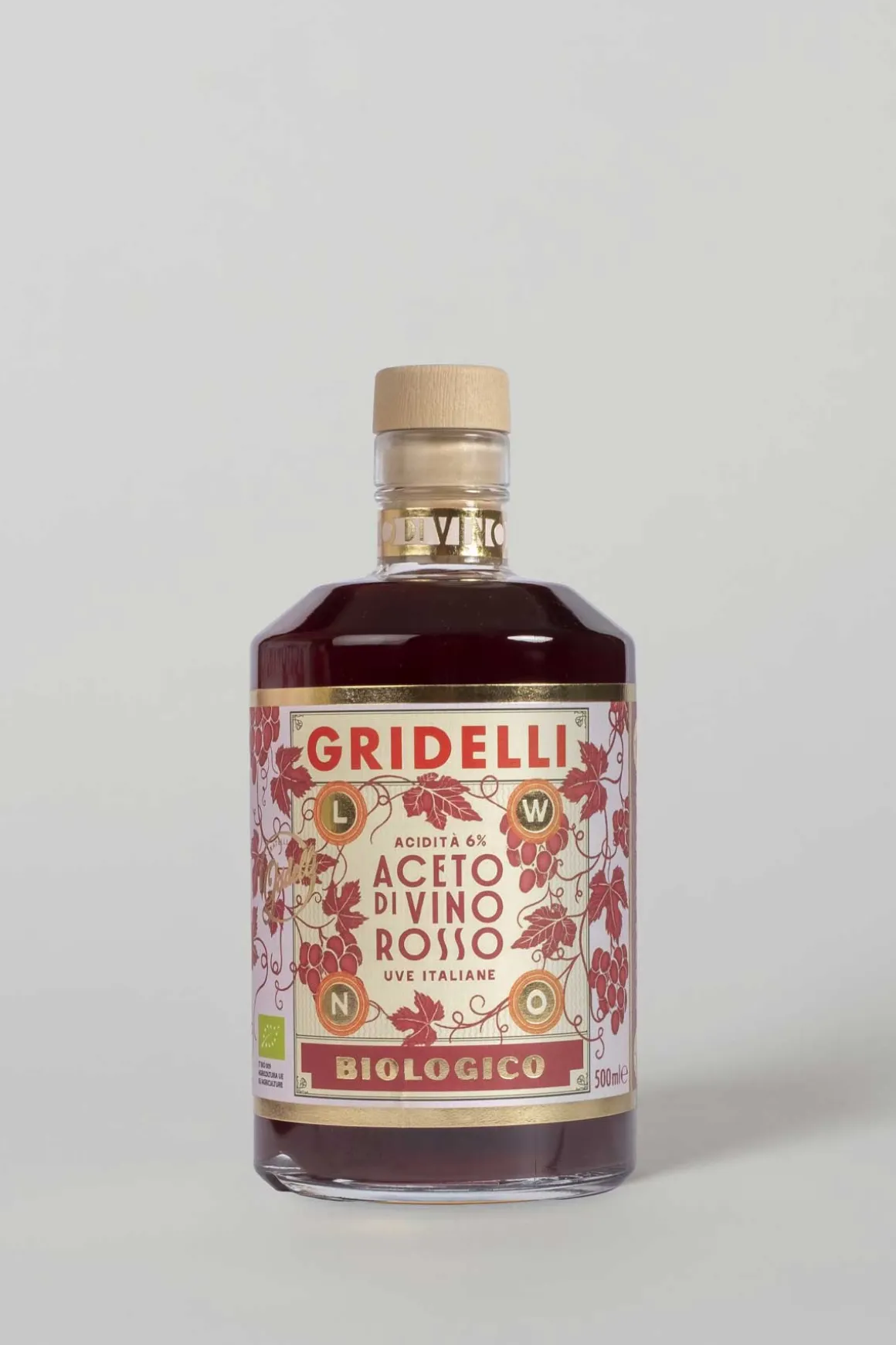 Rødvinseddik fra Gridelli – Aceto di Vino Rosso. Denne økologiske rødvinseddiken er laget med omsorg og kvalitet i fokus, og er et perfekt tillegg til kjøkkenet ditt. Med sin rike, balanserte smak løfter den enkle retter som salater, sauser, og marinader til et nytt nivå. Flaskens vakre design gjør den også til en flott gaveidé eller et nydelig innslag på kjøkkenbenken.