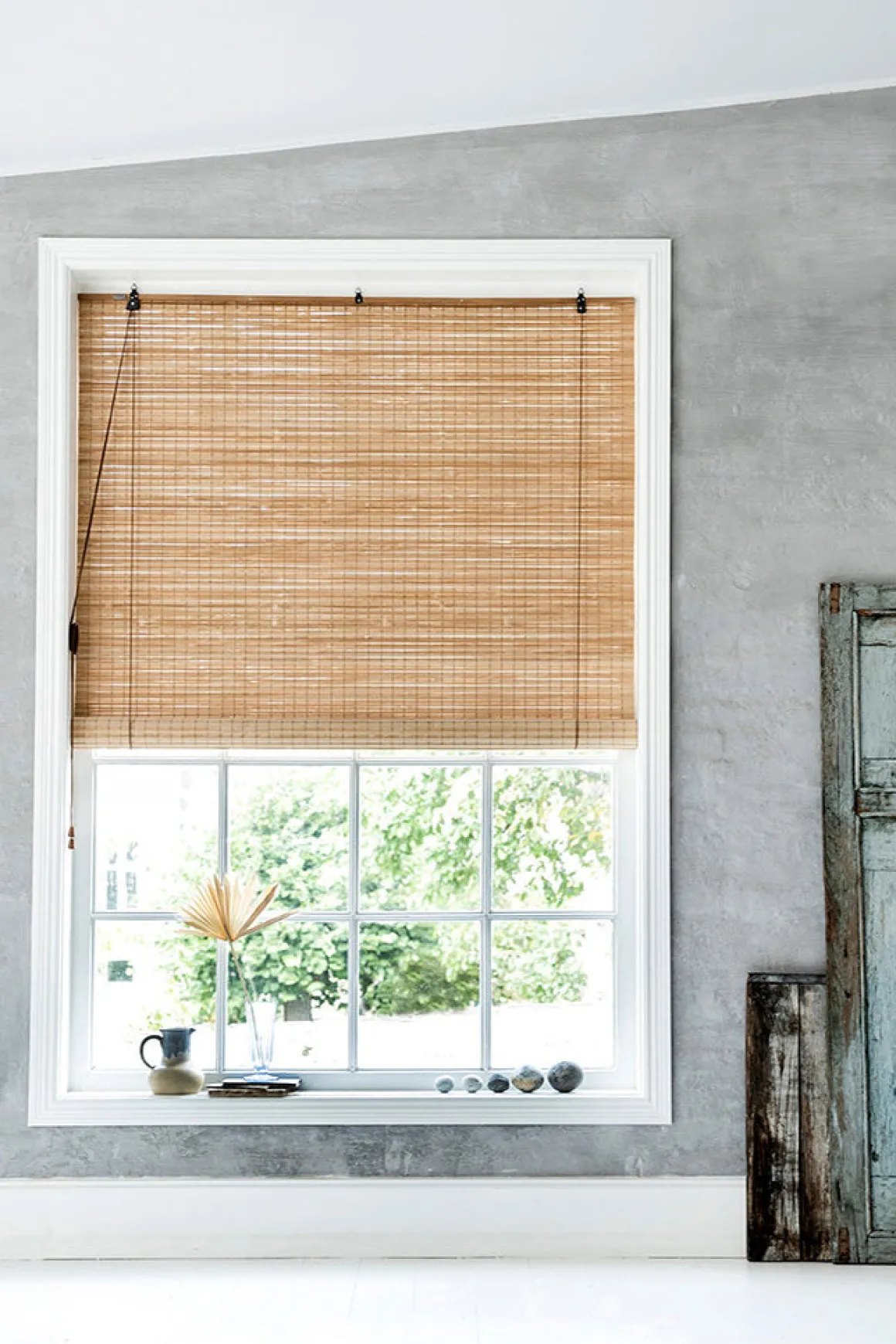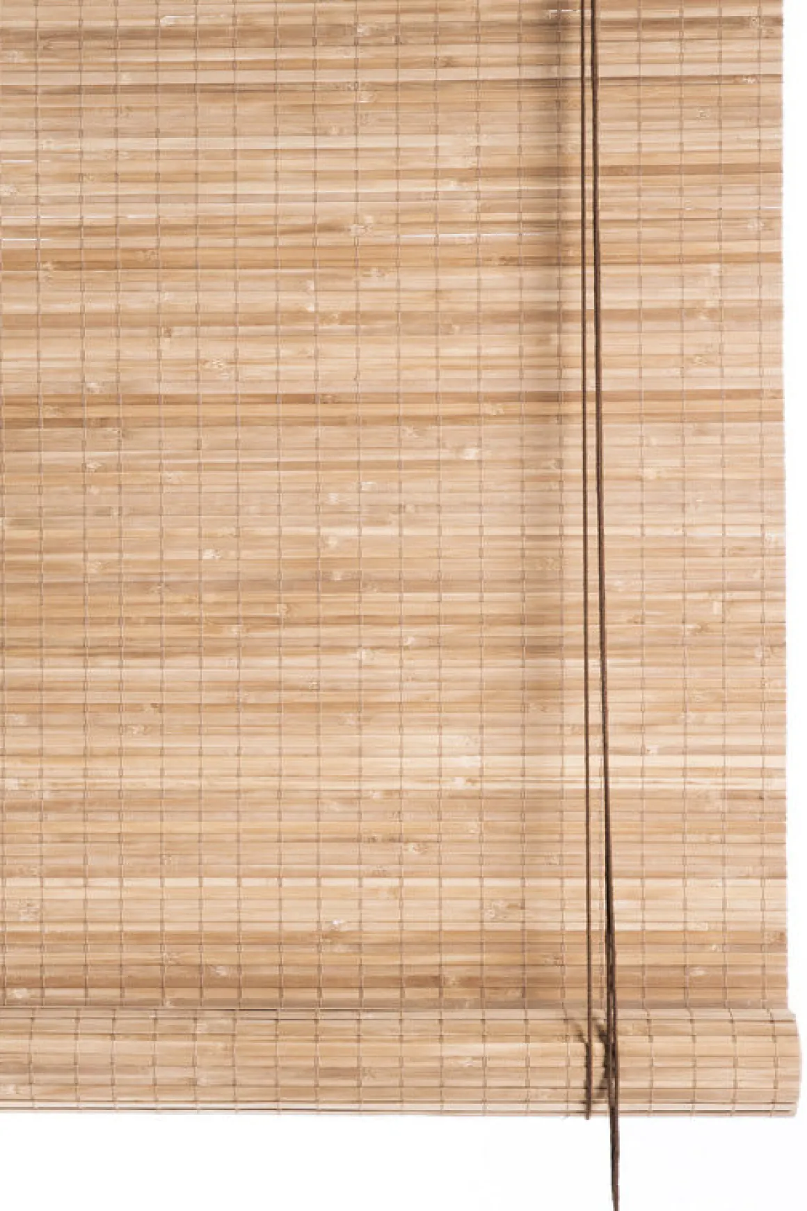 Brun Heldekkende Bambus rullegardin fra danske Color u0026amp; Co. En vakker gardin som består av bambuspinner på ca. 0,9 cm, som er vevd sammen på en overlappende måte som gir gardinen svært god solskjerming. Passer perfekt i rom som trenger god demping av sollys, som f.eks tv-stuen eller soverommet. Siden det er er litt avstand mellom karmen og rullegardinen, vil rullegardinen aldri være 100% lystett. Gardinen er laget av naturlig bambus, som har vært gjennom en varmeprosess som mørkner materialet – det betyr at gardinen er gjennomfarget.