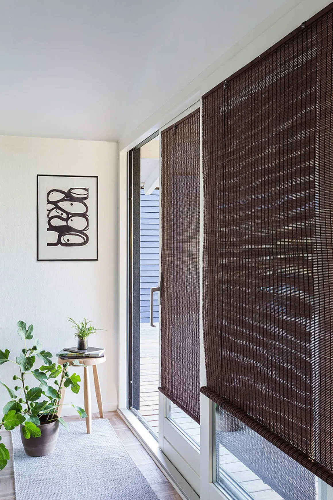 Bambus rullegardin fra danske Color u0026amp; Co i en nydelig mørkebrun, beiset farge. Gardinen består av ca. 3,5 mm brede bambuspinner som er vevd sammen av mørkebrun tråd. En superfin og enkel kvalitetsgardin som skaper lun og koselig stemning i hjemmet.