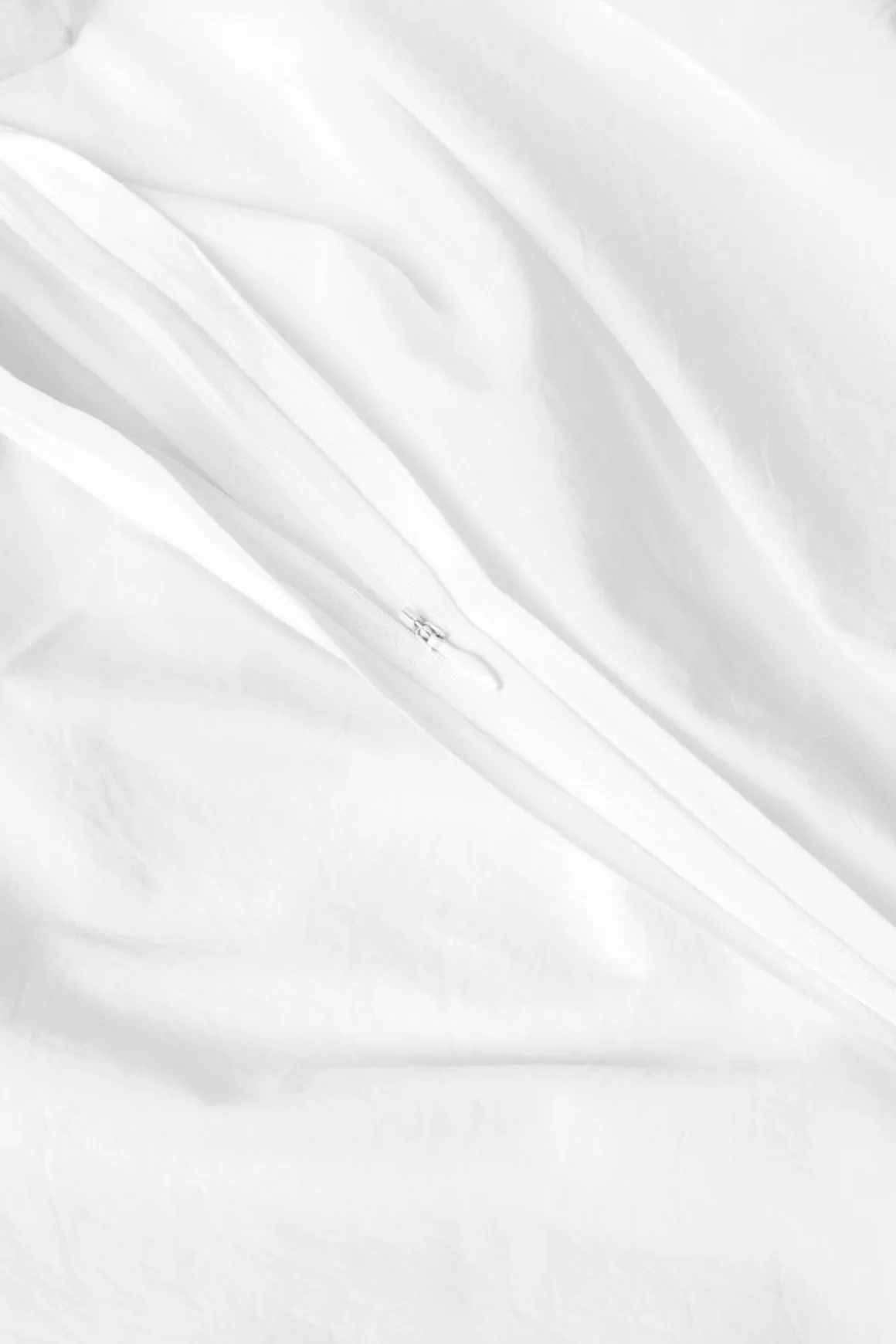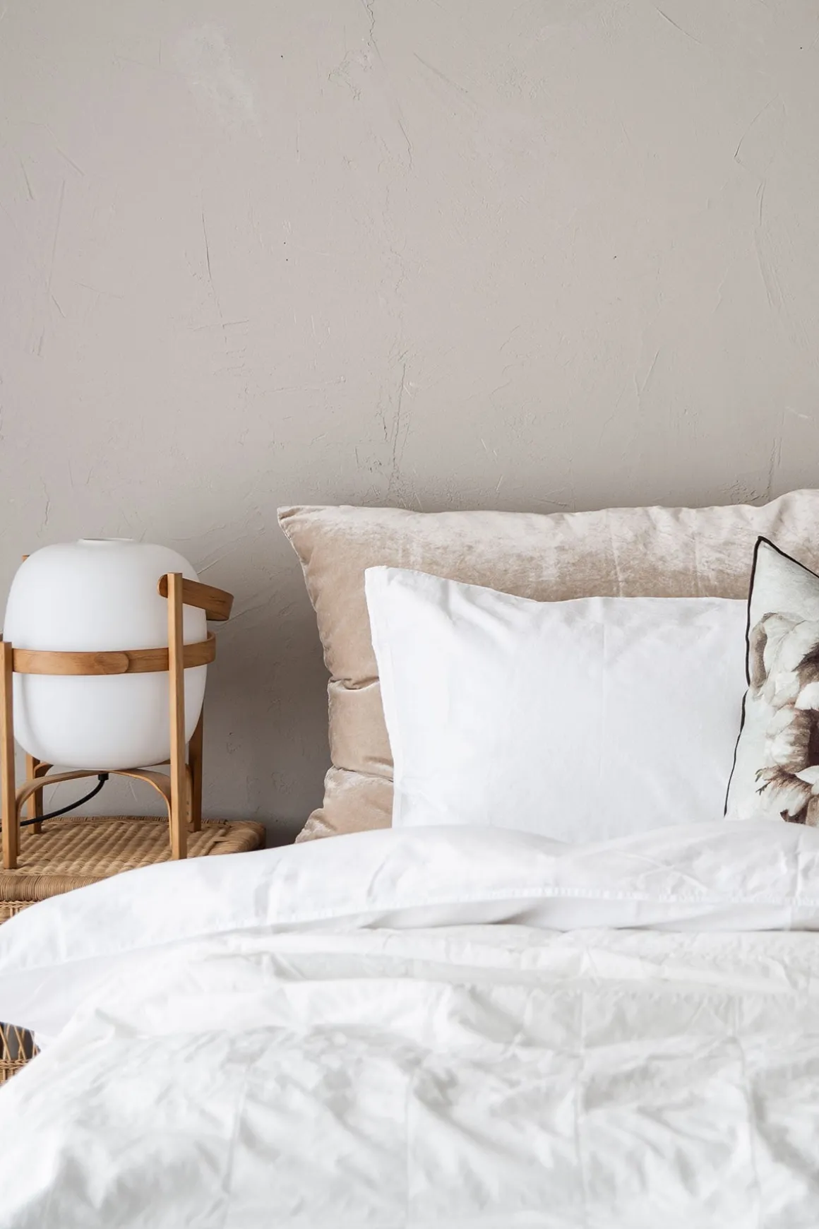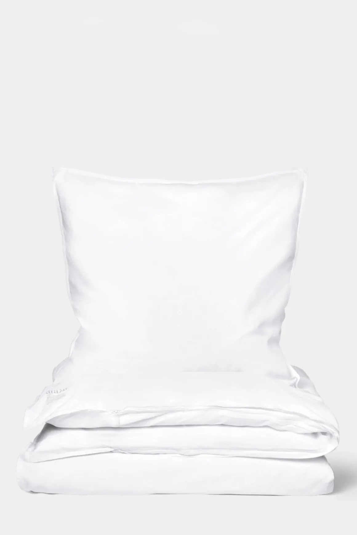 Sengesett i klassisk hvit fra Aiayu Domus. Laget av økologisk bomullspoplin for en myk og luksuriøs følelse. Settet inkluderer et enkelt dynetrekk i enten 200cm lengde eller 220cm lengde, og ett putetrekk (50x70cm). Sengetøyet har et avslappet, rynket utseende med sydd kant og enkel glidelås. Det lette og pustende materialet er perfekt for små øyeblikk av hverdagsluksus. Kommer pakket i en bomullspose ideell for oppbevaring og gjenbruk til andre formål.