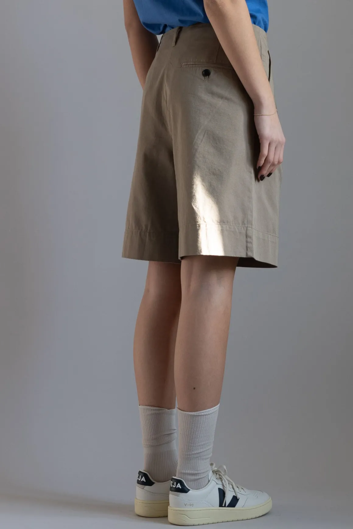 Bermudainspirerte shorts med et skreddersydd uttrykk, laget i kraftig 100 % økologisk Chetna-bomull. Willy har en skjult linning med beltehemper, skrå lommer og plissert detaljering. Shortsen er designet med kontrastfargede, håndlagde hornknapper.