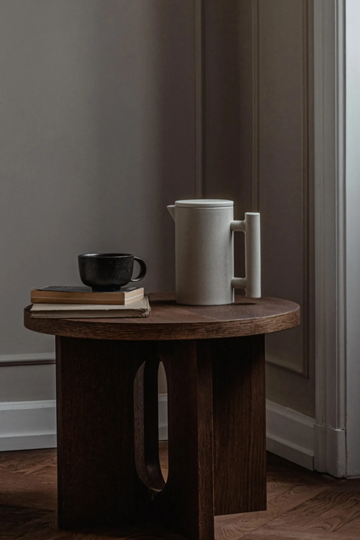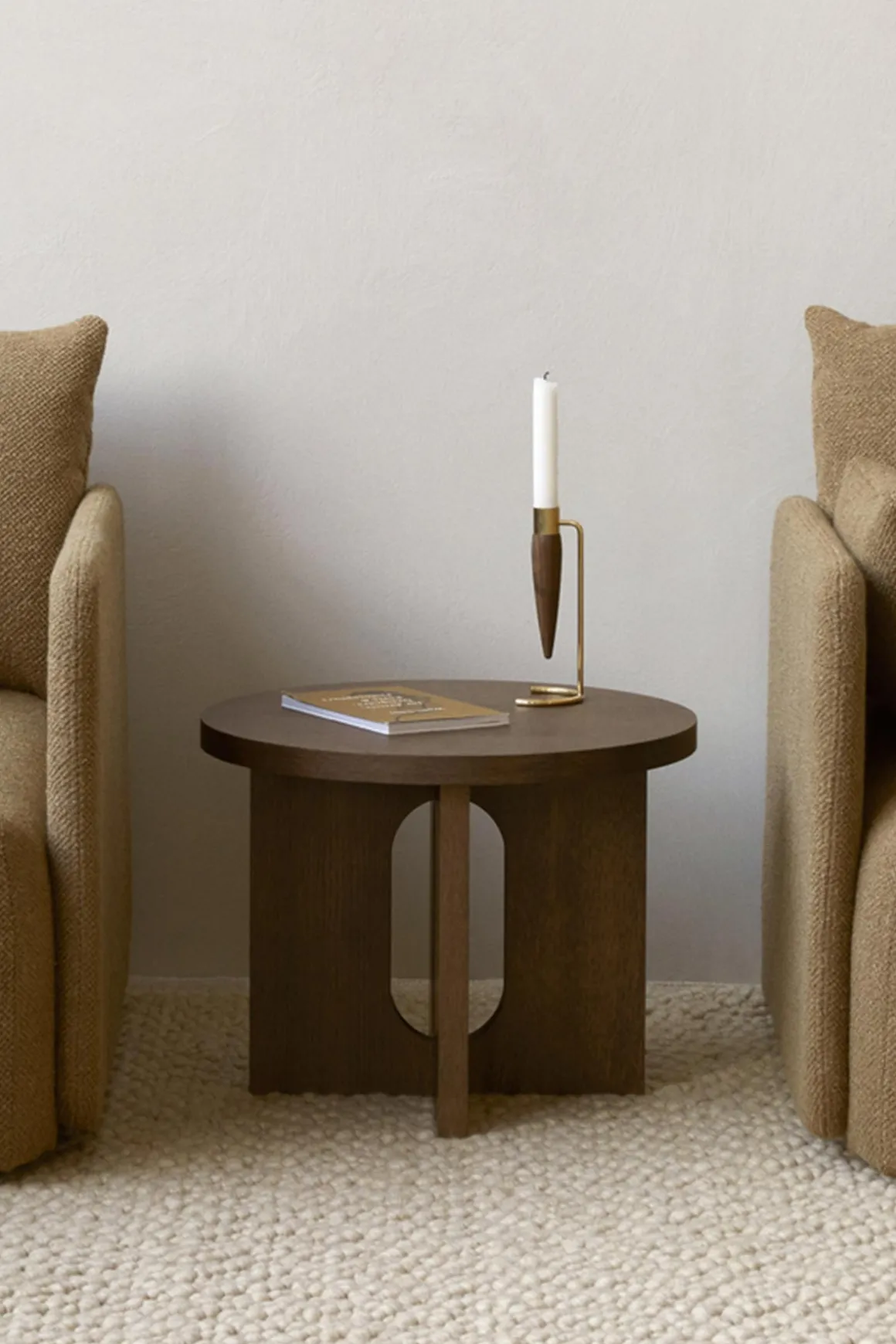 Androgyne Side Table, designet av den norske arkitekten og designeren Danielle Siggerud. Et perfekt proporsjonert sidebord med et klassisk uttrykk i valnøtt og valnøttfinér. Bruk bordet som et mindre stuebord, eller som sidebord til planter, bøker og levende lys. Bordet finnes i flere varianter; understell i naturlig eik, mørkbeiset eik eller valnøtt og med bordplate i ulike typer stein.