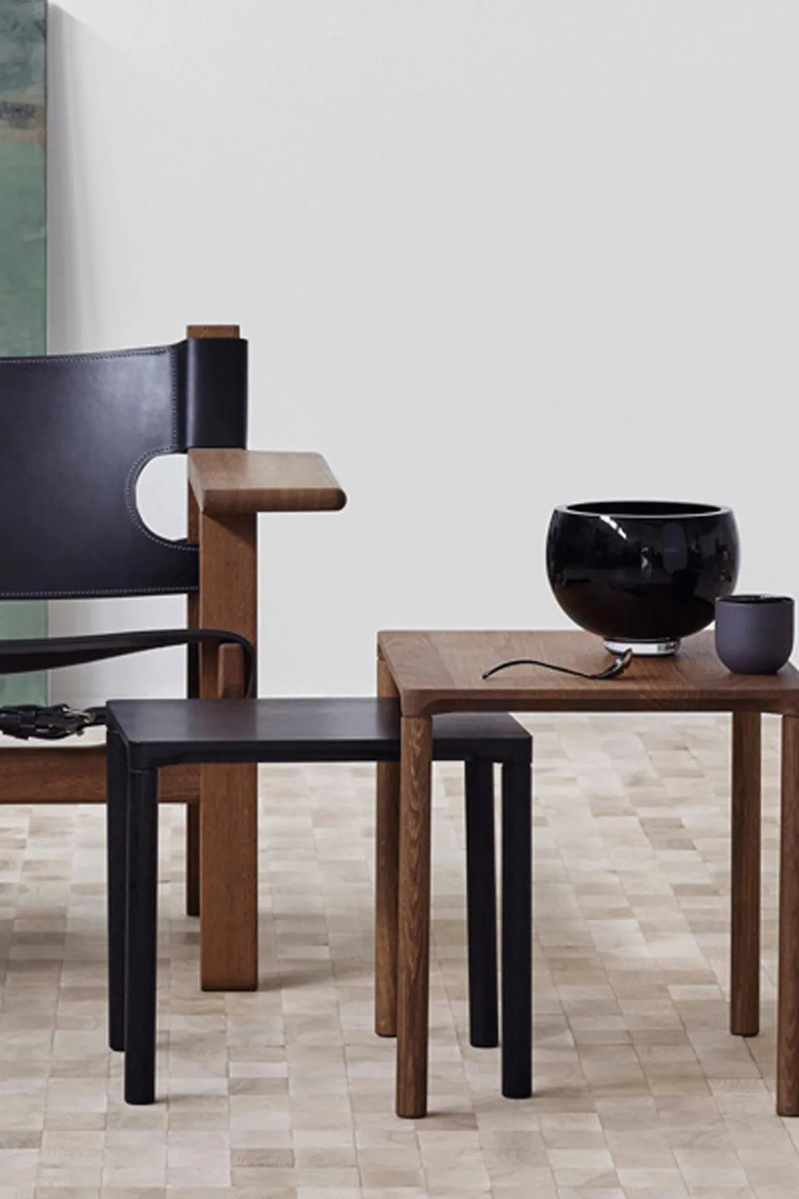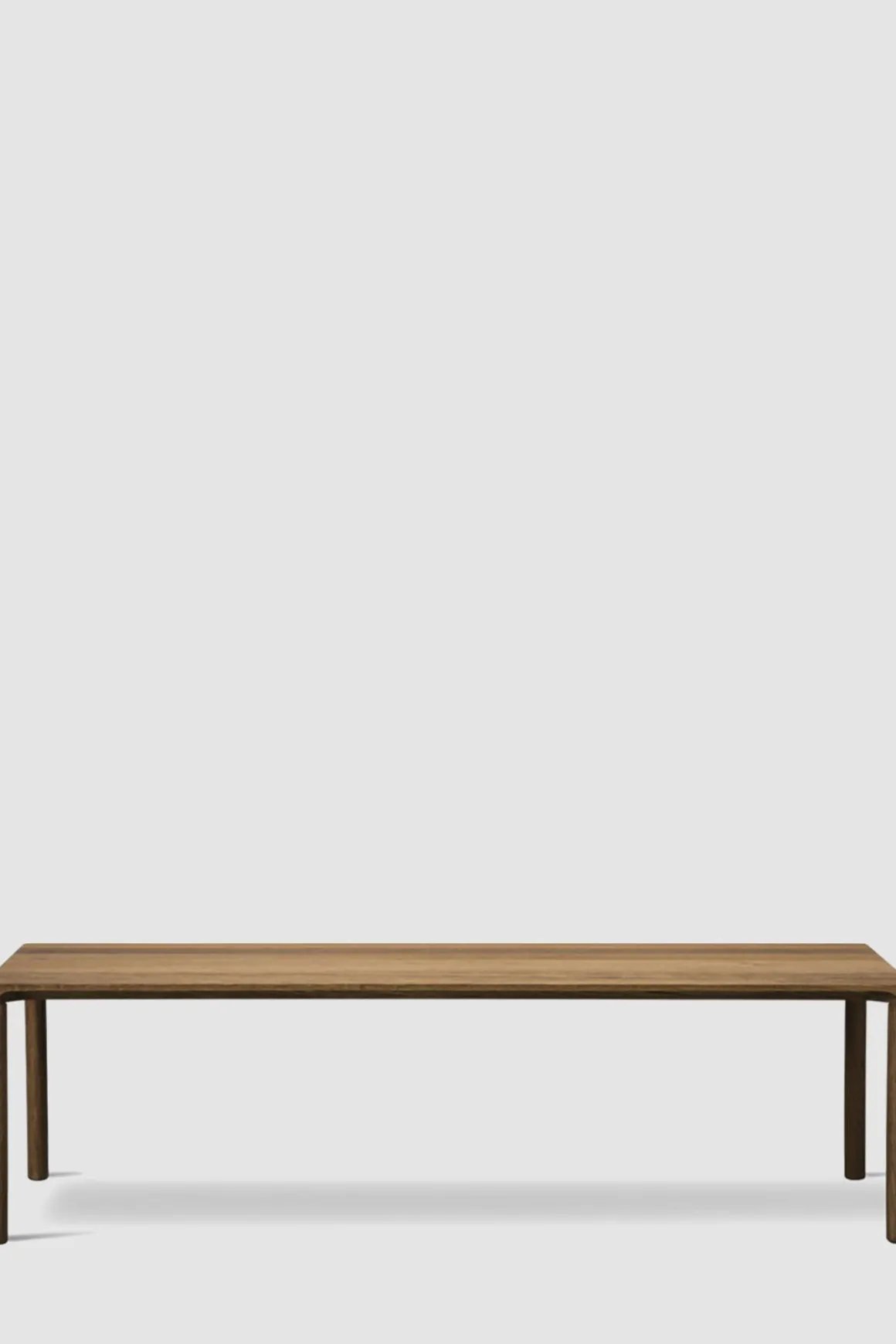 Piloti er et enkelt og minimalistisk bord i røkt eik fra danske Fredericia med subtil eleganse i materialenes kvalitet og overflate. Piloti-serien er designet av Hugo Passos for Fredericia og ble lansert i 2016. Den slanke bordplaten avløses av smekre og avrundede bordben i bordets fire hjørner. Til tross for det sarte designet er dette et svært robust bord som passer perfekt i alle hjem. Piloti-bordets allsidighet åpner for et bredt spekter av muligheter og bruksområder, som sidebord eller sofabord. Bordet er laget i solid eik og alle modeller kommer i to forskjellige høyder; 35 cm og 41 cm som gjør at man for eksempel kan sette to bord i ulik høyde i hverandre. Piloti fås i såpet-, oljet-, lakkert- eller røkt eik og bordet er svært enkelt å montere da bena lett kan skrus ut for å lette transport eller oppbevaring. Har du spørsmål om Piloti eller Fredericia, så ta gjerne turen innom butikken vår på Stabekk.