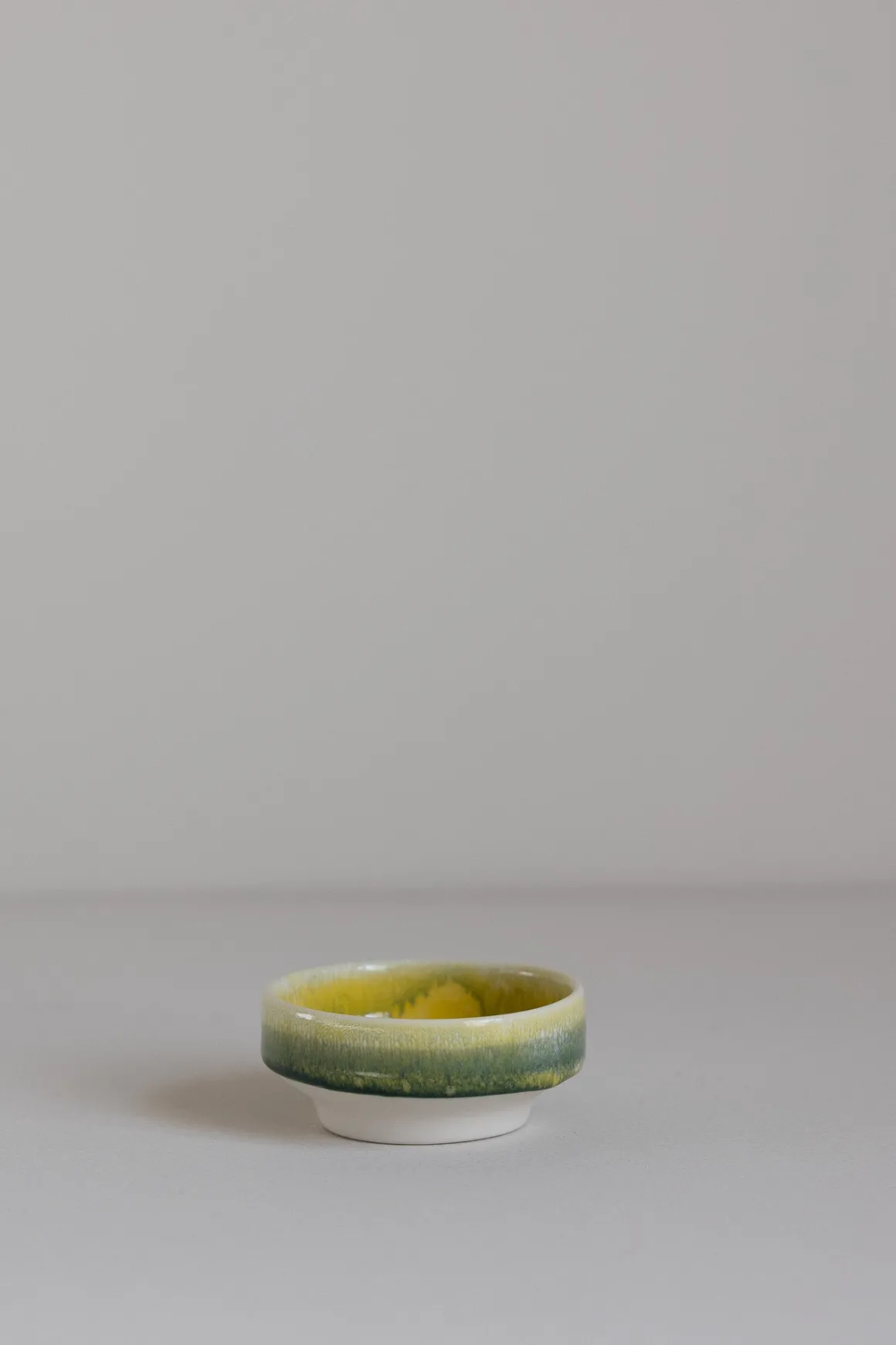 Dip Dish er en liten, håndlaget skål med en bred, flat fot som gir stabilitet på flate underlag. Hver skål er unik, med små variasjoner i form og glasur. Den passer perfekt til soyasaus, aioli, oliven og nøtter, eller som oppbevaring for smykker.