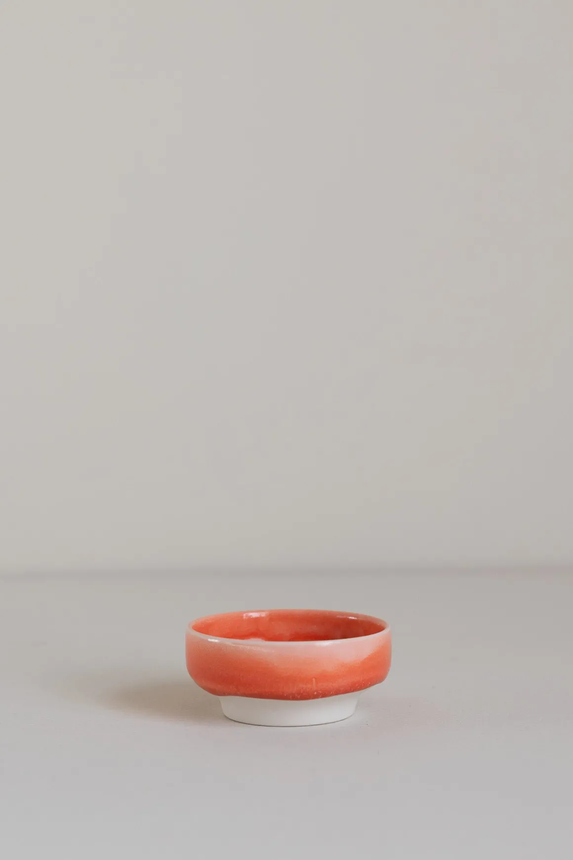 Dip Dish er en liten, håndlaget skål med en bred, flat fot som gir stabilitet på flate underlag. Hver skål er unik, med små variasjoner i form og glasur. Den passer perfekt til soyasaus, aioli, oliven og nøtter, eller som oppbevaring for smykker.
