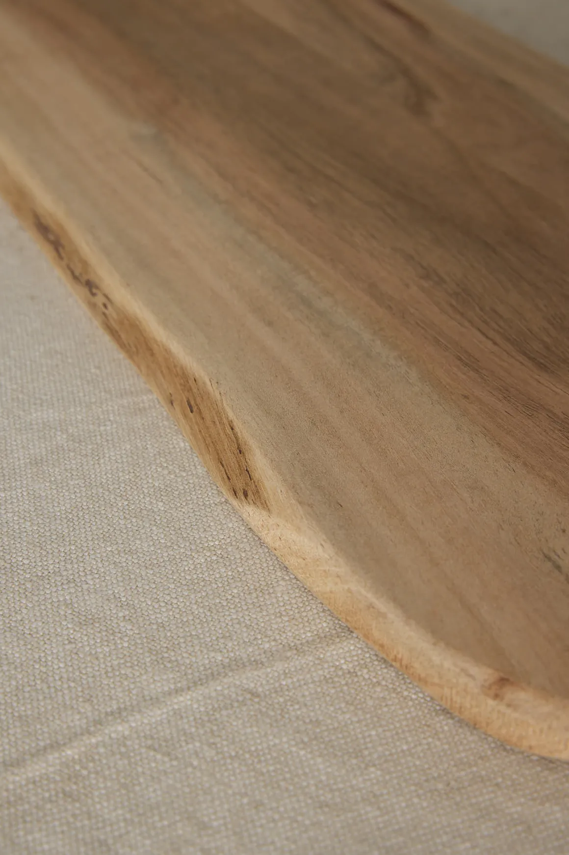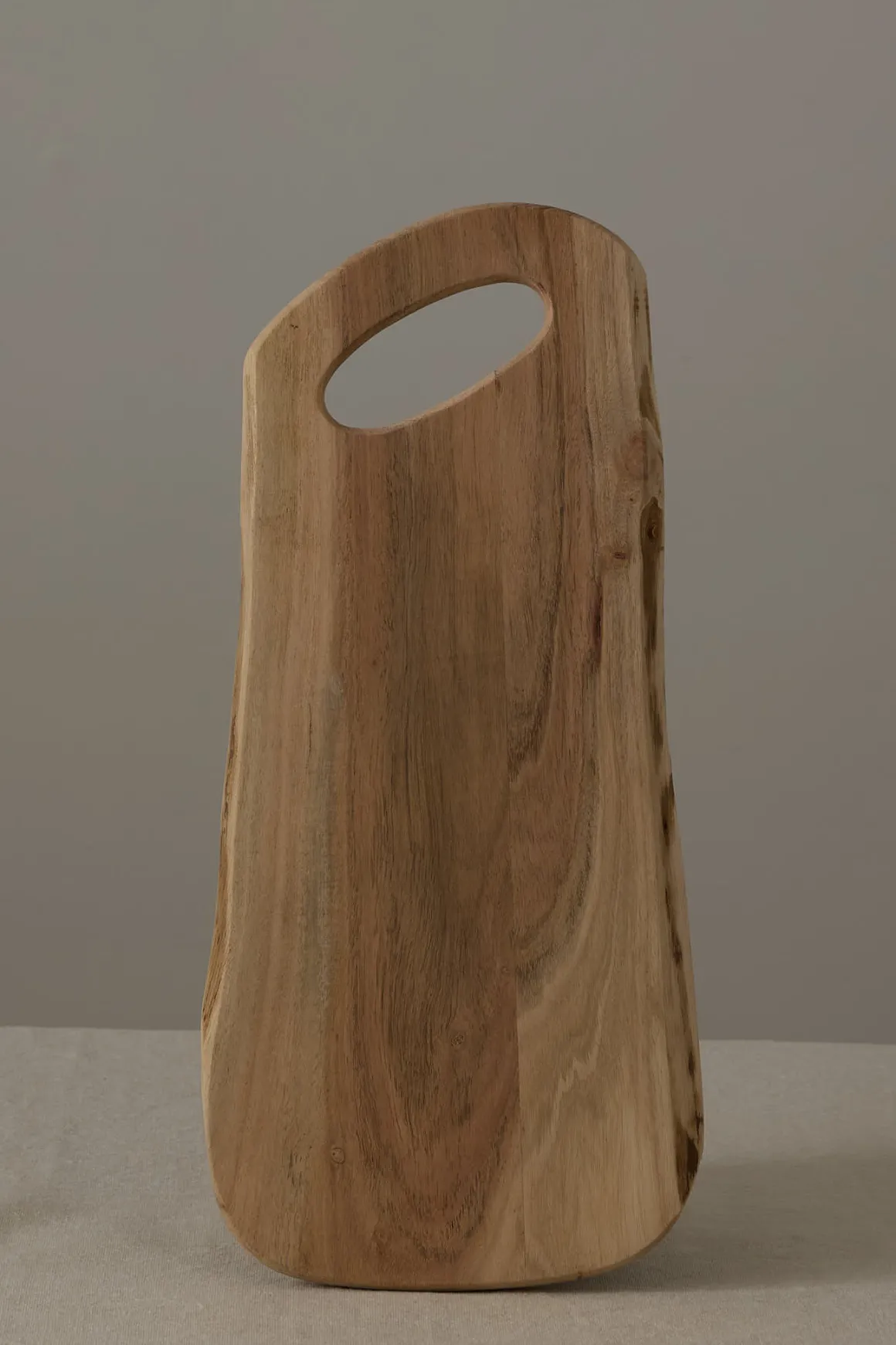 Skjærebrett fra svenske Bruka. Skjærebrettet har en organisk form som gir det et unikt og naturlig uttrykk. Perfekt både til servering og enkle kutteoppgaver, og med det praktiske utskårne håndtaket er det lett å håndtere. Treverket tilfører dessuten en varm og sjarmerende følelse til kjøkkenet.