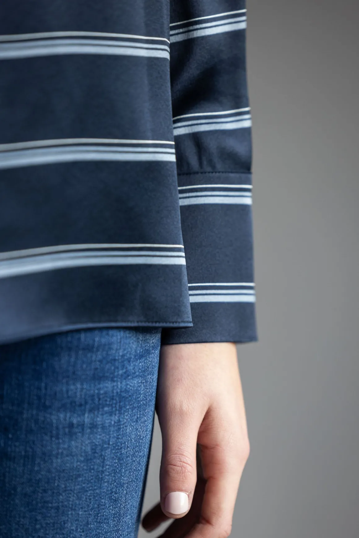 Skjorte fra Vince som henter inspirasjon fra sesongens rugby-trend med sine klassiske striper og kontrastkrage. Dette plagget balanserer det sporty og moderne med en avslappet passform og glansfullt silkestoff som føles lett mot huden. De fine detaljene, som treknappslukking og agoyaskjellknapper, tilfører et subtilt preg. En skjorte som er like fin til jeans som til et mer gjennomført antrekk, perfekt for deg som ønsker et avslappet, men kult uttrykk.