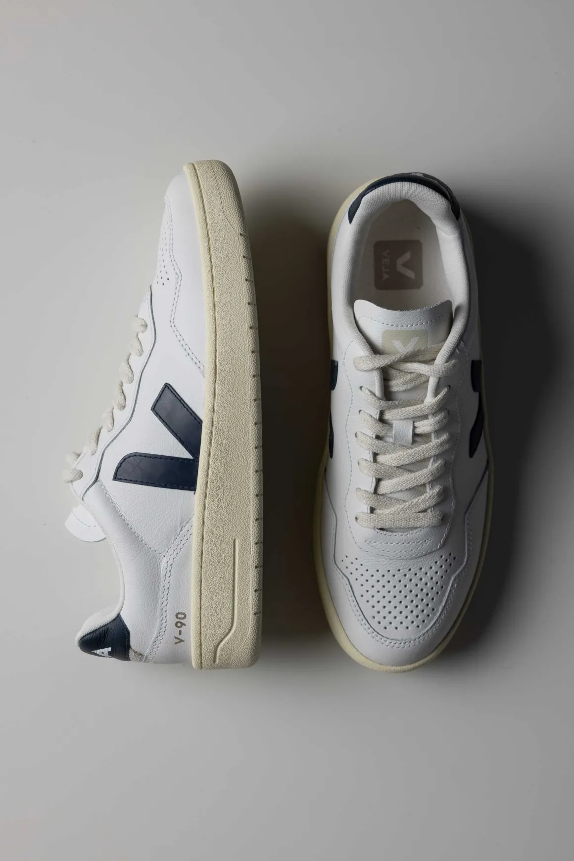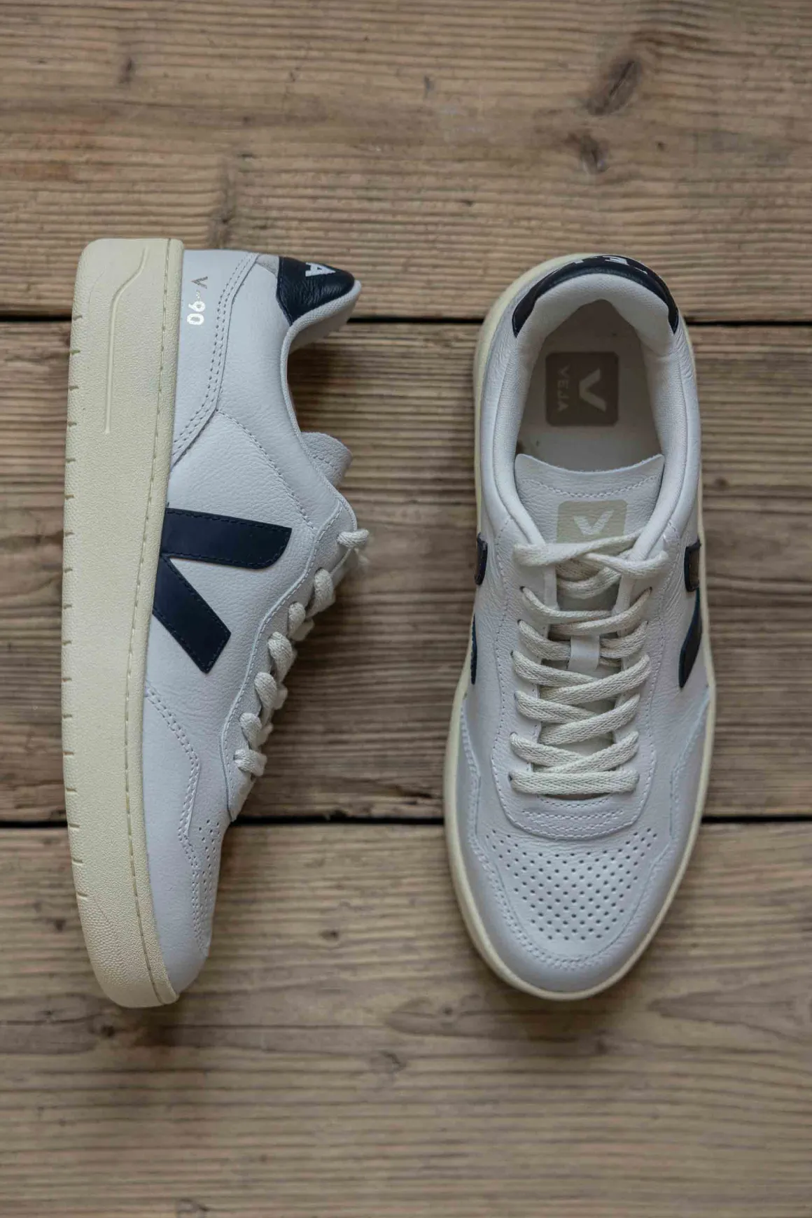Veja V-90 er et par tidløse sneakers som passer til alt. Laget av mykt skinn, med resirkulerte materialer i sålen og fôr av resirkulert polyester, kombinerer de kvalitet og omtanke for miljøet. De komfortable lissene i økologisk bomull setter prikken over i-en. Et perfekt valg for deg som vil ha klassiske sneakers med en bærekraftig vri.