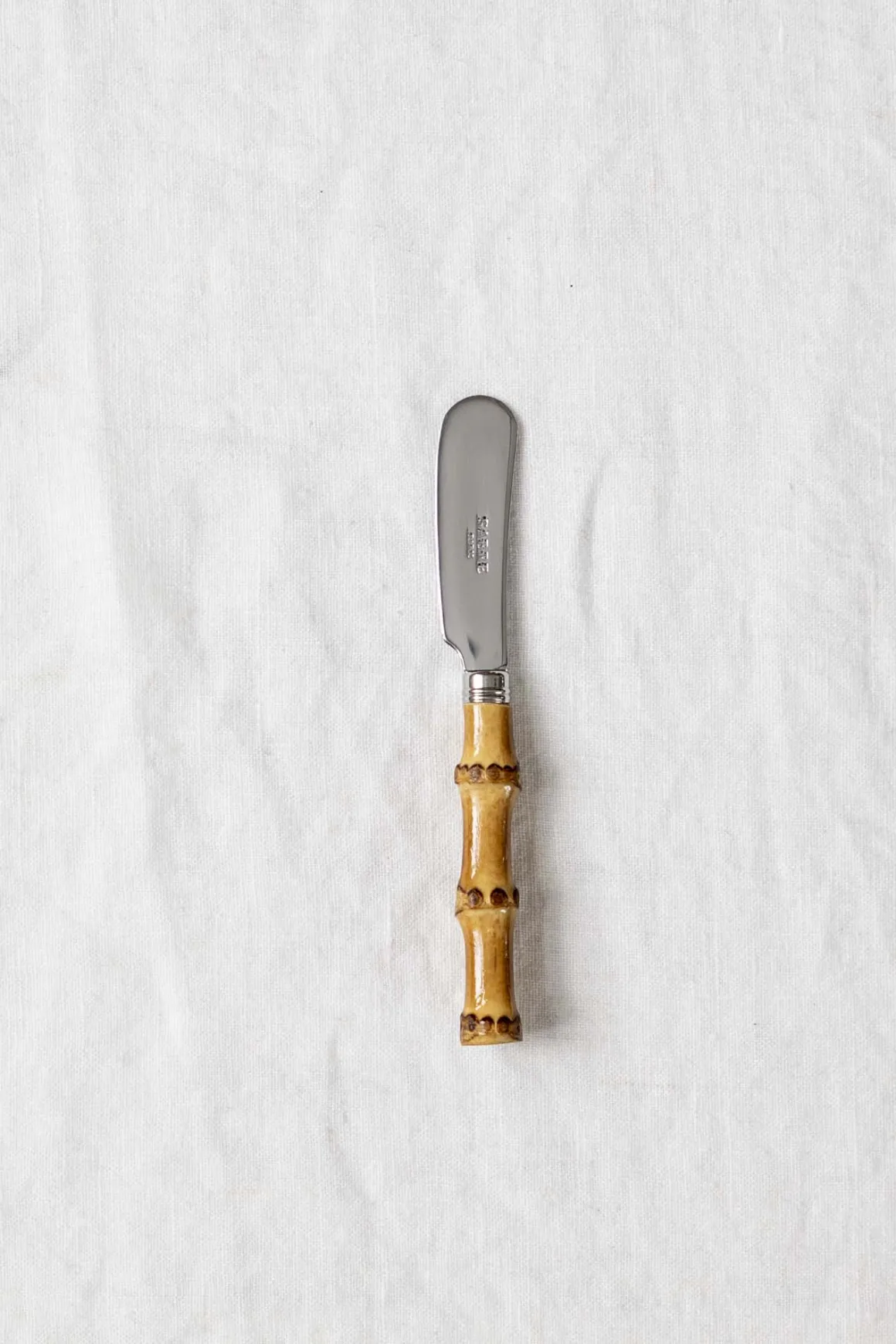 Nostalgisk smørkniv med bambusskaft fra franske Sabre Paris.
