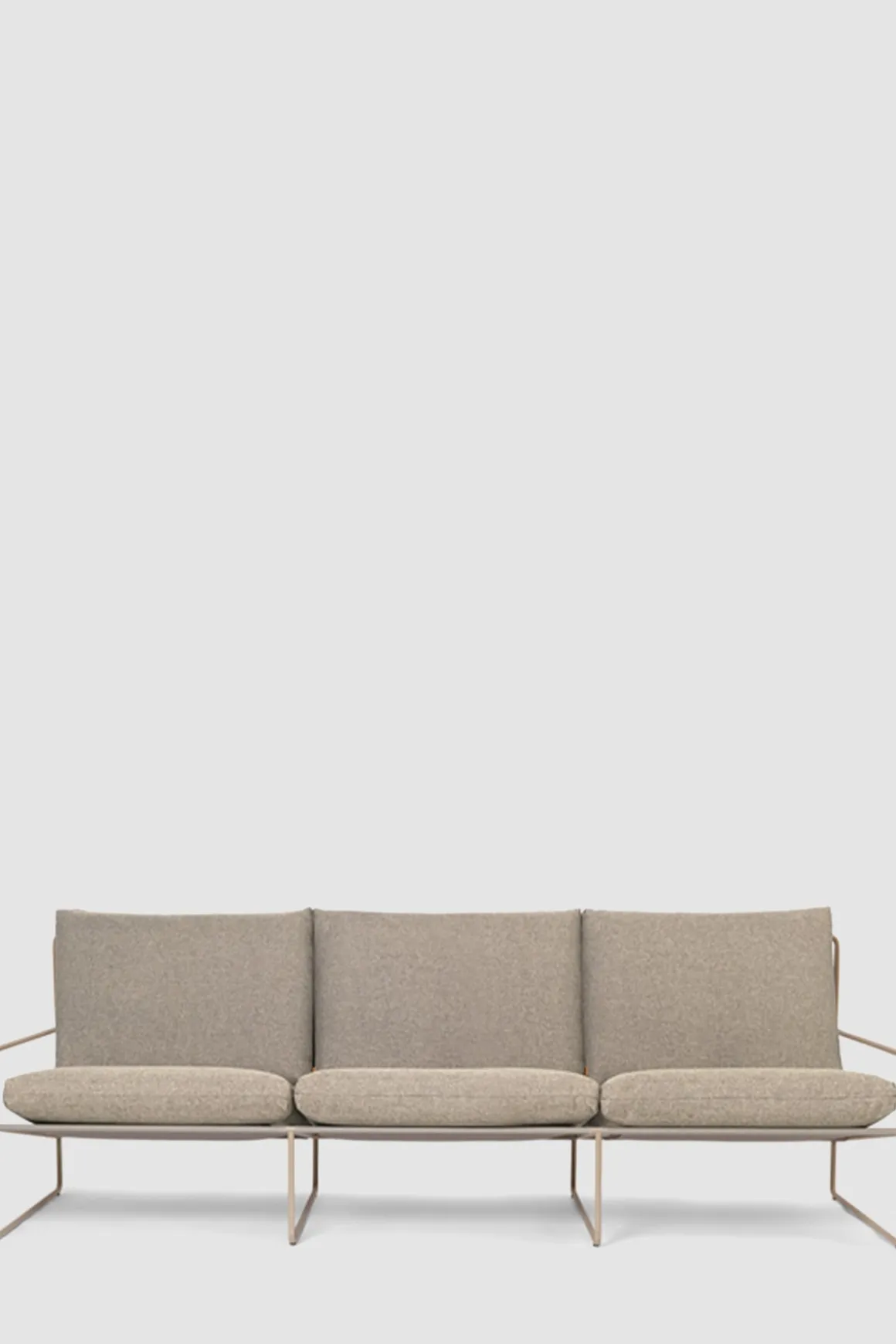 klassisk profil fra Ferm Living. Vår og sommer betyr avslapning og kvalitetstid tilbrakt utendørs. Skap et innbydende salongområde med Desert Sofa, hvor det er god plass til å sole seg, lese bøker og underholde venner og familie. Med det uforutsigbare været i tankene, er Desert Sofa designet for utendørs bruk og er komplettert med koselige sofaputer som er både vann- og UV-bestandige. Sofaen kommer i et sandfarget trekk med beige ramme. Stilfull, minimalistisk og komfortabel.