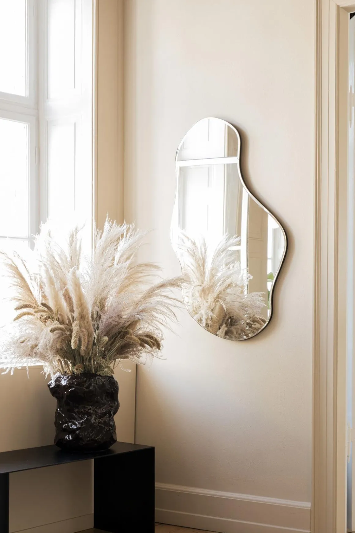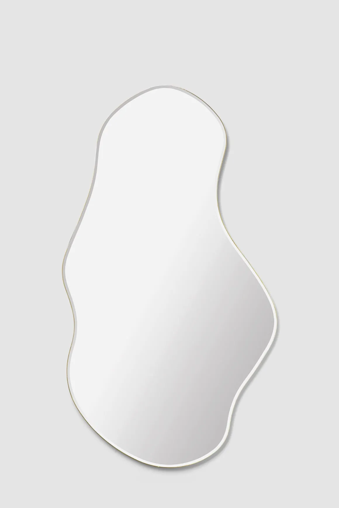 Det populære Pond speilet fra Ferm Living utforsker organiske former for klassiske speil med metallramme. Inspirert av frittflytende bevegelser av vann, inviterer speilet åpne og flytende former inn i hjemmet ditt. De buede kantene er rammet inn med en metallkant i messing, og speilet kan henges flere måter, slik at du kan finne den perfekte passformen for rommet og dine behov. Virkelig et unikt speil som vil sette et personlig preg på hjemmet ditt. Perfekt i stuen, på soverommet eller i gangen.