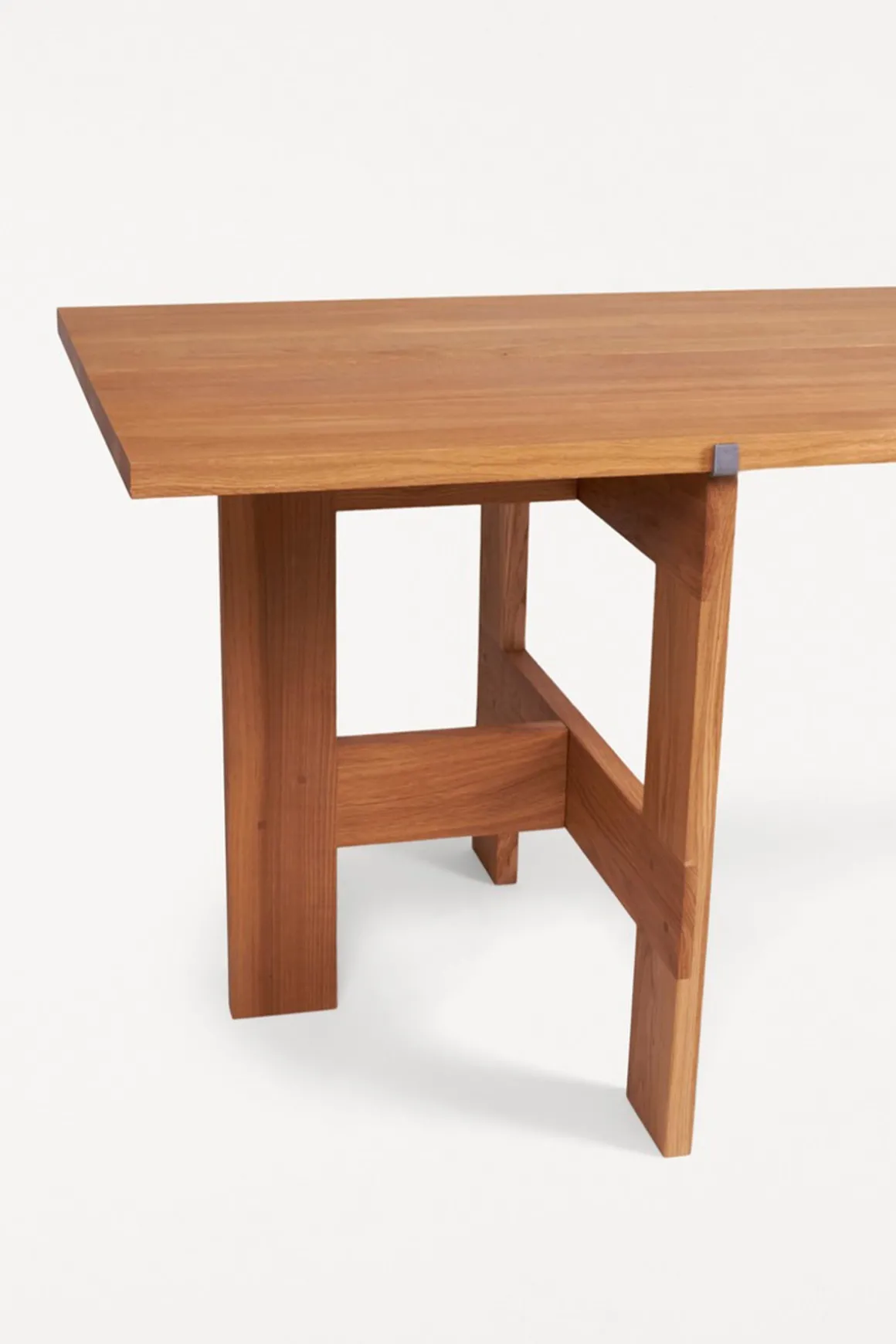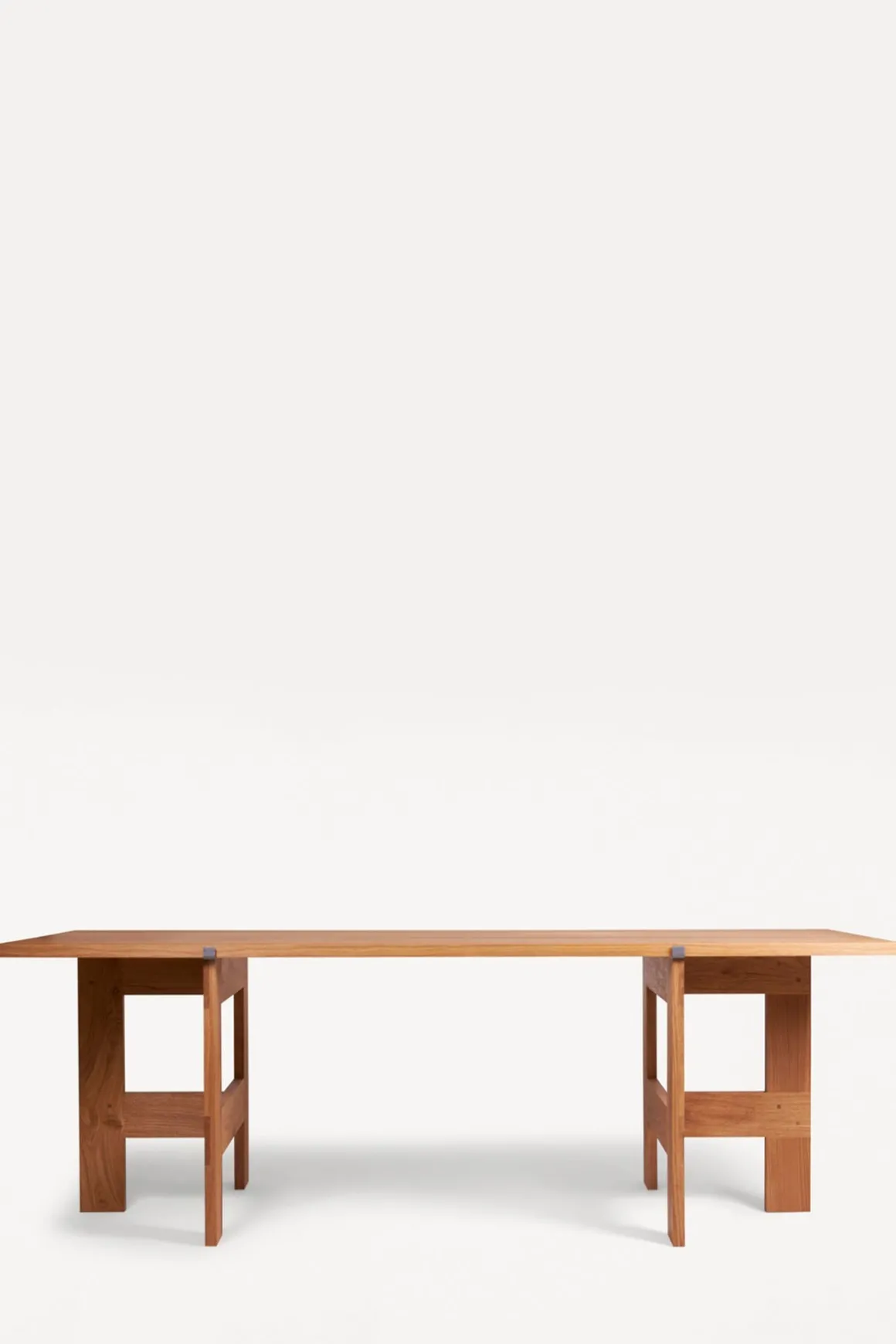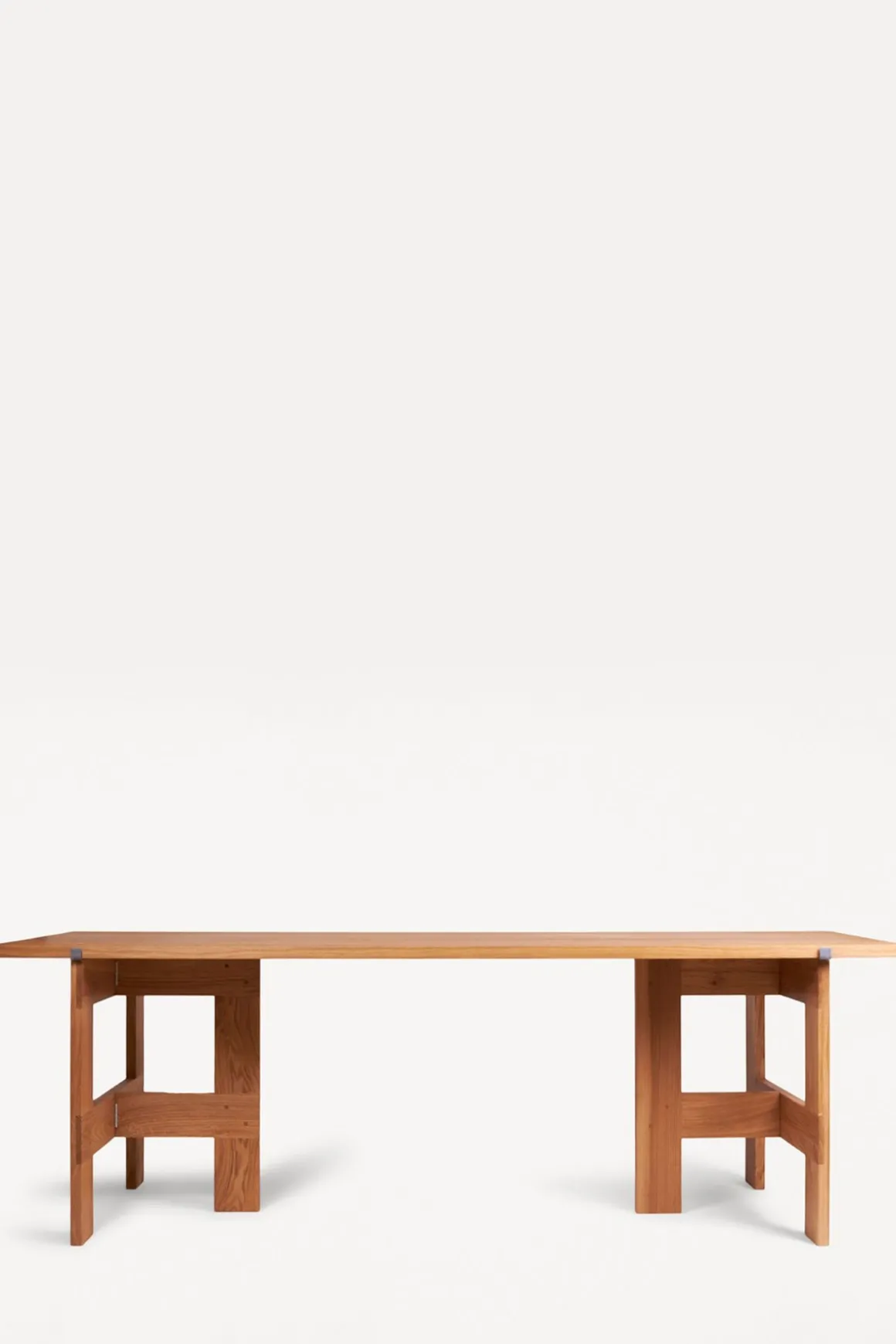 Farmhouse Trestle Planks spisebord fra Framas Farmhouse Dining Series. Spisebordet hviler på to bukker som ligner de synlige bjelkene som sees på tradisjonelle gårdshus, og bordplaten består av to solide 40 cm brede eikplanker som gir bordet en tradisjonell og rustikk look. Plankene holdes på plass av to støttebraketter, og bukkene kan også brukes til andre bordplater enn den som følger med om man ønsker det. Spisebordet passer perfekt med 6 stoler rundt og kan brukes både som spisebord eller skrivebord. Bordet kommer flatpakket og er enkel å montere og flytte rundt.
