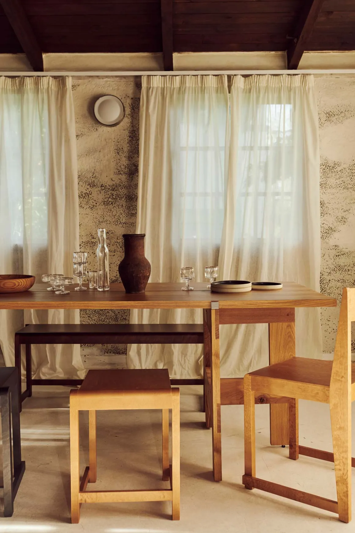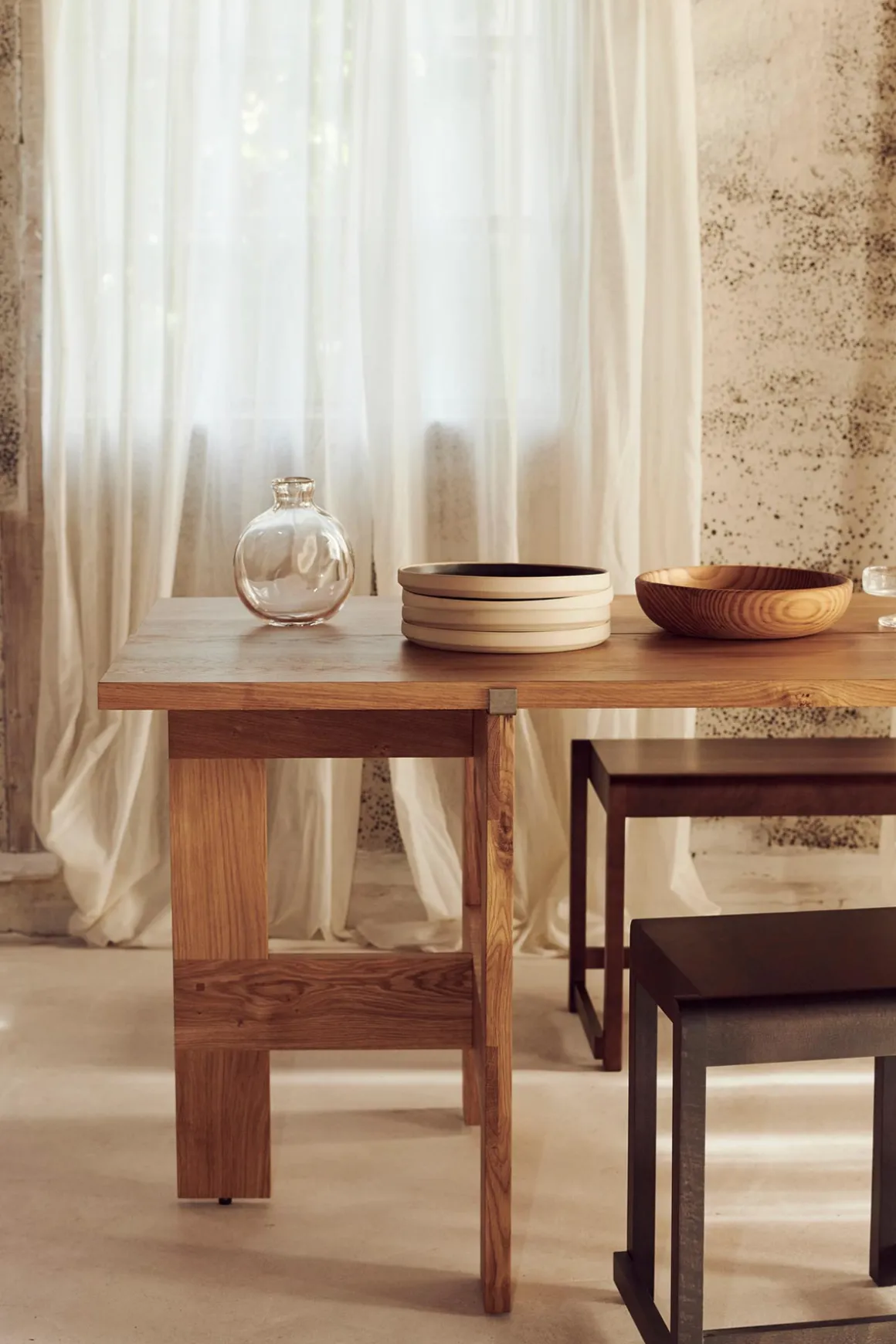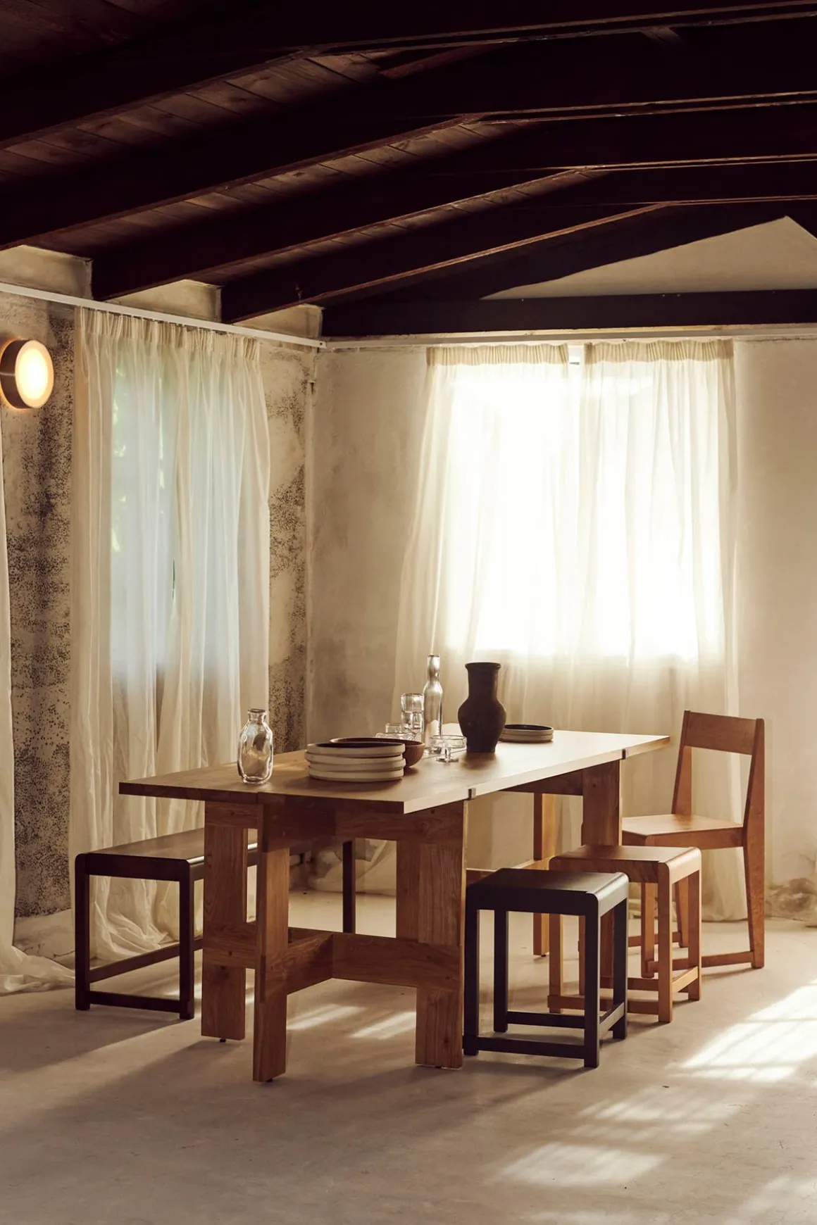 Farmhouse Trestle Planks spisebord fra Framas Farmhouse Dining Series. Spisebordet hviler på to bukker som ligner de synlige bjelkene som sees på tradisjonelle gårdshus, og bordplaten består av to solide 40 cm brede eikplanker som gir bordet en tradisjonell og rustikk look. Plankene holdes på plass av to støttebraketter, og bukkene kan også brukes til andre bordplater enn den som følger med om man ønsker det. Spisebordet passer perfekt med 6 stoler rundt og kan brukes både som spisebord eller skrivebord. Bordet kommer flatpakket og er enkel å montere og flytte rundt.