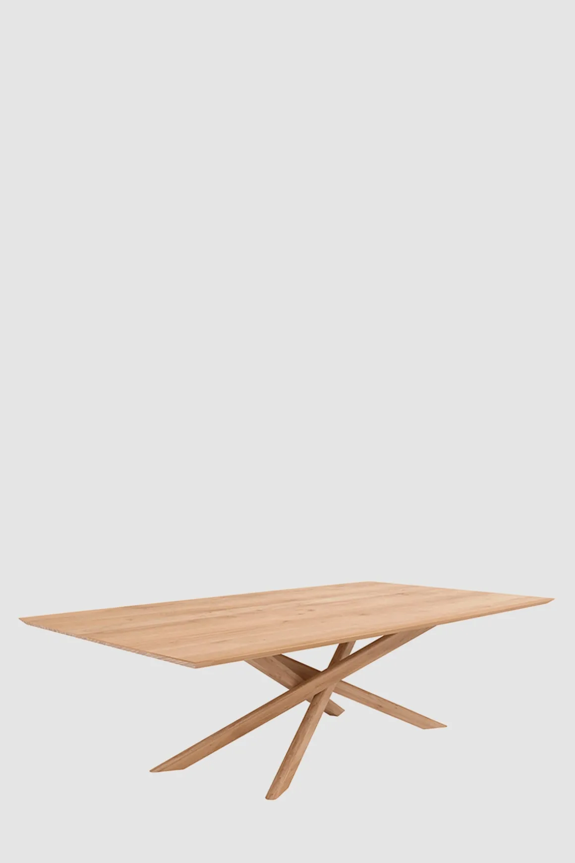 Mikado spisebord i massiv eik fra belgiske Ethnicraft med plass til 10. Mikado er både funksjonelt og pent å se på, med sitt nordiske uttrykk og bordben som nærmest fletter seg i hverandre. Designer Alain van Havre ble inspirert av puslespill når han designet bordet, og resultatet ble et minimalistisk spisebord med en skulpturell edge. Lett og samtidig solid er ord som kjennetegner Mikado-serien.