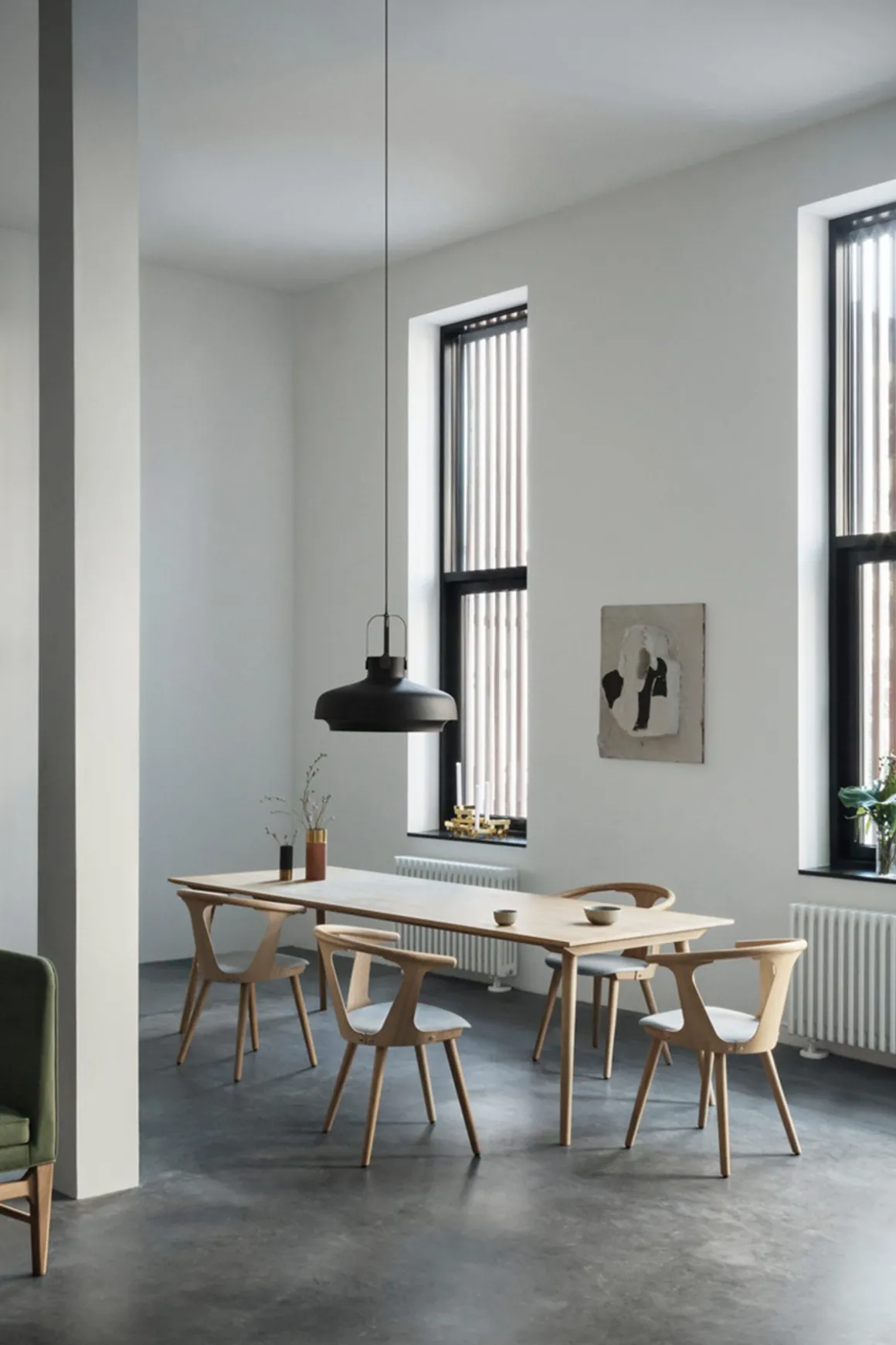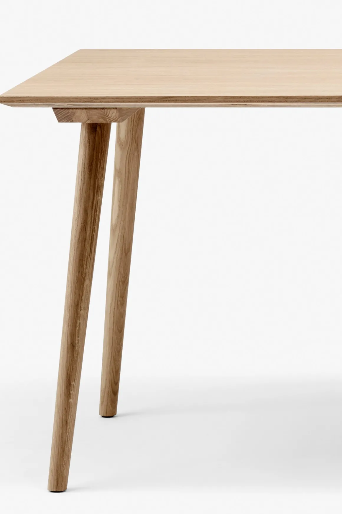SK5 In Between spisebord, designet av finske Sami Kallio for u0026amp;Tradition. Inspirert av den skandinaviske arven innen design og møbelhåndverk, er In Between et resultat av Sami Kallios solide forankring i tradisjonelle håndverksteknikker og hans øye for geniale detaljer. Det startet med en enkelt stol som senere resulterte i en serie møbler inkludert både bord og barkrakker. Bordet er laget av solid oljet eller lakkert tre og kommer i tre forskjellige varianter. Man kan velge mellom finish i oljet eik, røkt oljet eik, sort lakkert eik eller oljet valnøtt.