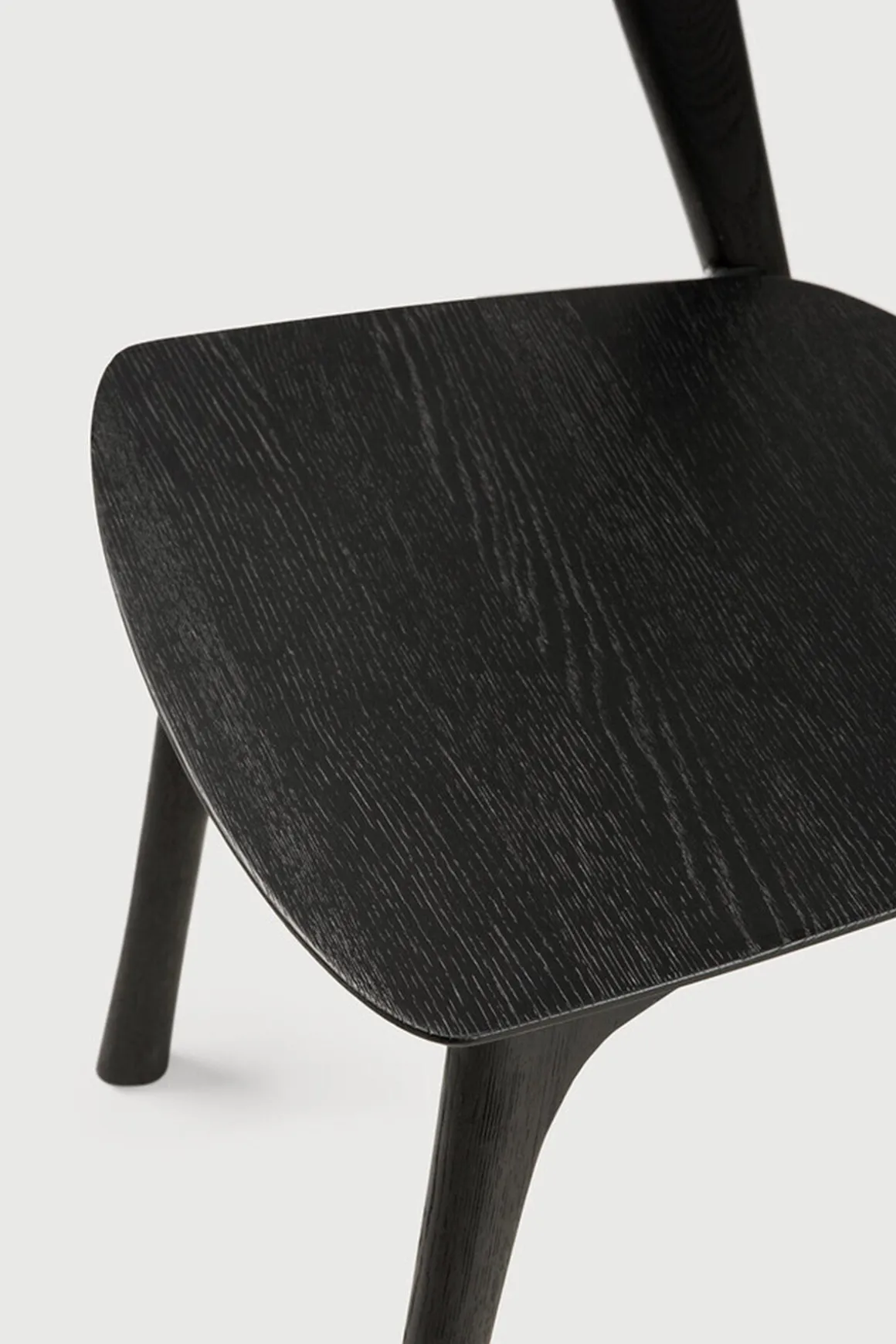 Spisestol i sort, lakkert eik fra belgiske Ethnicraft. Vi har blitt helt forelsket i produktene fra Ethnicraft, og Oak Bok stolen er intet unntak. Stolens design slår den perfekte balanse mellom skulpturell eleganse og moderne håndverk, og har et lett og moderne uttrykk.