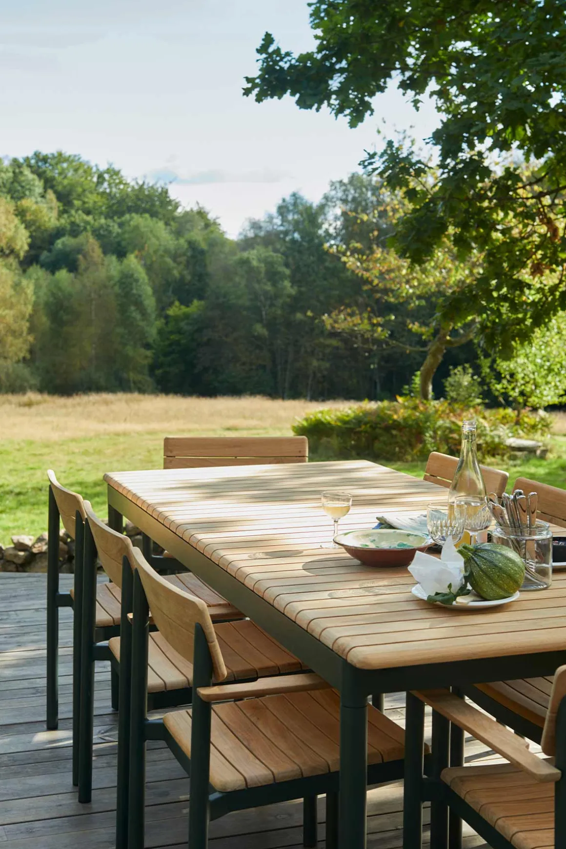 Stol med armlener i teak og pulverlakkert aluminium fra Skageraks nye Pelago-kolleksjon, designet av NOTE Design Studio. Pelago-kolleksjonen er en serie utemøbler med et grasiøst, moderne uttrykk, og Pelago Chair er designet spesielt for lange middager rundt et bord. Med rygg, sete og armlener i teak og ramme i pulverlakkert aluminium, er stolen lett og allsidig, samtidig som den er solid og komfortabel å sitte på. Stolens brede armlener er formet slik at man kan stable to stoler oppå hverandre. Stolens slanke profil og enkle, moderne uttrykk gjør den til en tidløs favoritt. Kombiner den gjerne med andre møbler fra Pelago-serien for en komplett look.