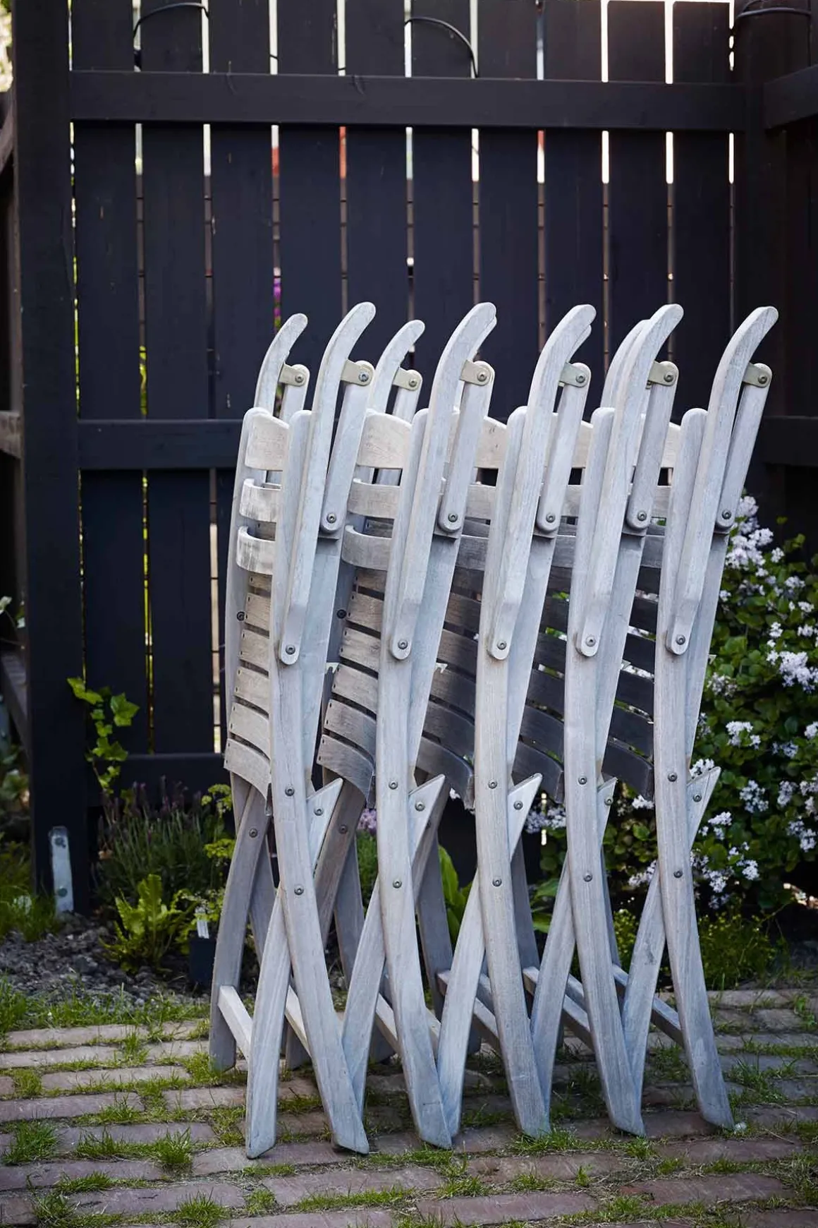 Teak: generell rengjøring ved behov med et passende trerensemiddel og en myk børste. Skyll etterpå med vann og la det tørke i 24 timer. Merk: Tørk av bord, benker og stoler etter bruk med en tørr klut. Ettersom treverket er ubehandlet, vil overflaten patinere over tid og etter hvert bli vakkert sølvgrå. Hvis du ønsker å bevare eller intensivere den originale honninggyldne fargen, bruk en passende møbelolje med jevne mellomrom. Treverket er motstandsdyktig mot vind og vær med eller uten behandling på grunn av det høye innholdet av naturlige oljer, men hvis mulig anbefaler vi å oppbevare møblene i et uoppvarmet rom i vintermånedene.