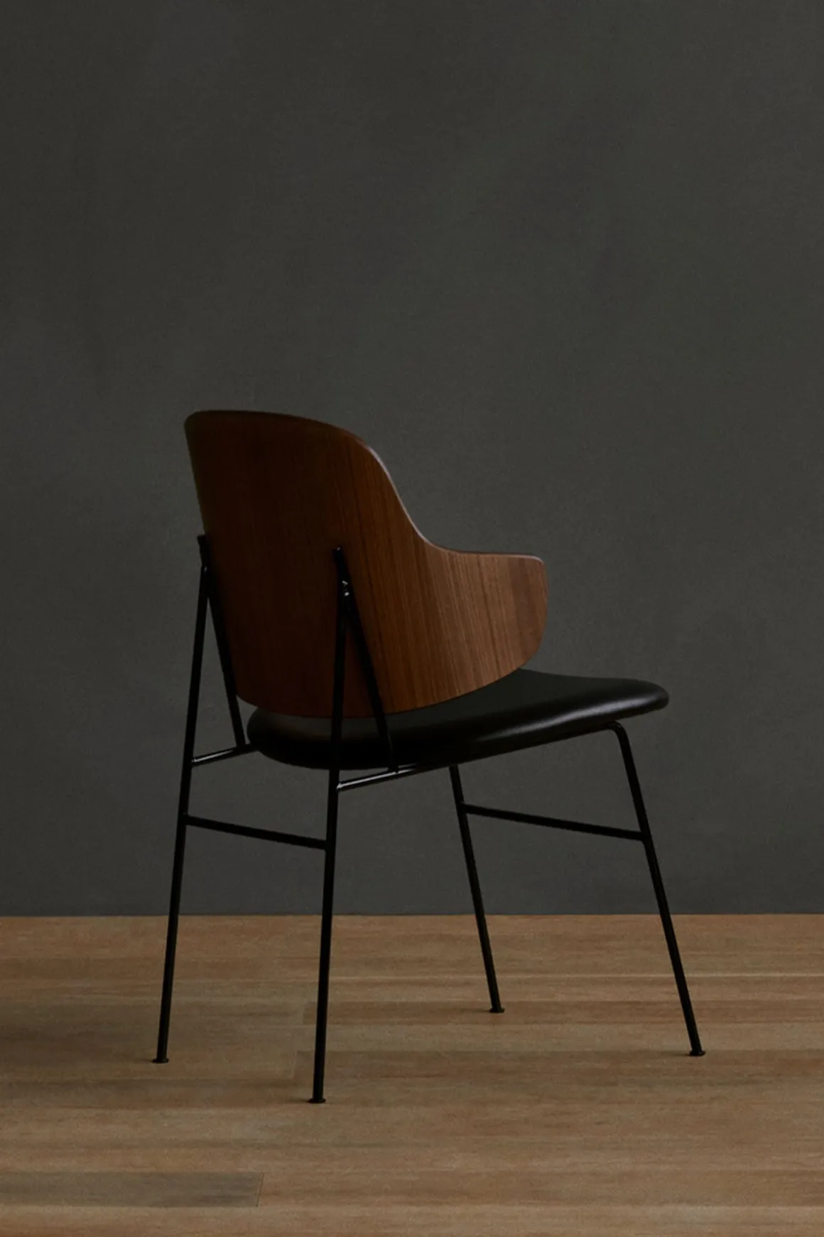klassisk, skulpturell og kunstnerisk og ble en bestselger fra midten av århundret, og er like populær den dag i dag. Navnet Penguin kommer fra stolens lekne form: stolen er som om en liten pingvin som er i ferd med å omfavne deg når du setter deg ned. Pingvinformede svømmeføtter på baksiden av stolen er typisk for Ib Kofod-Larsens estetiske tilnærming og organiske enkelhet. Da han designet stolen, var komfort en prioritet. Den buede ryggen og det vinklede setet omfavner kroppen og gir overraskende høy komfort i det ellers veldig enkle designet. Ryggen blir en del av kroppen som sikrer komfort og støtte samt en unik sitteopplevelse. Proporsjonene med det litt overdimensjonerte setet og ryggen, i kontrast til den petite, delikate rammen, gir en naiv følelse, samtidig som Penguin er en sofistikert stol med personlighet. Penguin Chair er relansert i spisestue-, lounge- og gyngestol, og er laget med en rygg i eik-eller valnøttfinér og med eller uten polstret sete.