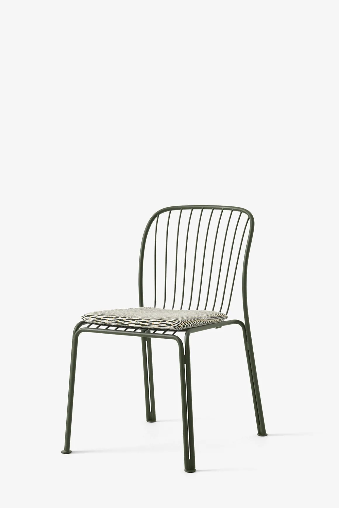 Thorvald utestol fra danske u0026amp;Tradition, designet av anerkjente Space Copenhagen. Thorvald er laget av pulverlakkert stål og kommer i sort, grønn og elfenbenshvit. Stolens ramme og spilene er bøyd og delene blir deretter sveiset, polert, galvanisert og deretter pulverlakkert. Thorvald kan kombineres med andre typer utemøbler eller du kan komplettere med bord i samme serie for en komplett look til uteplassen. Stolene kan også enkelt stables som gjør de svært praktiske og plassbesparende når de ikke er i bruk.