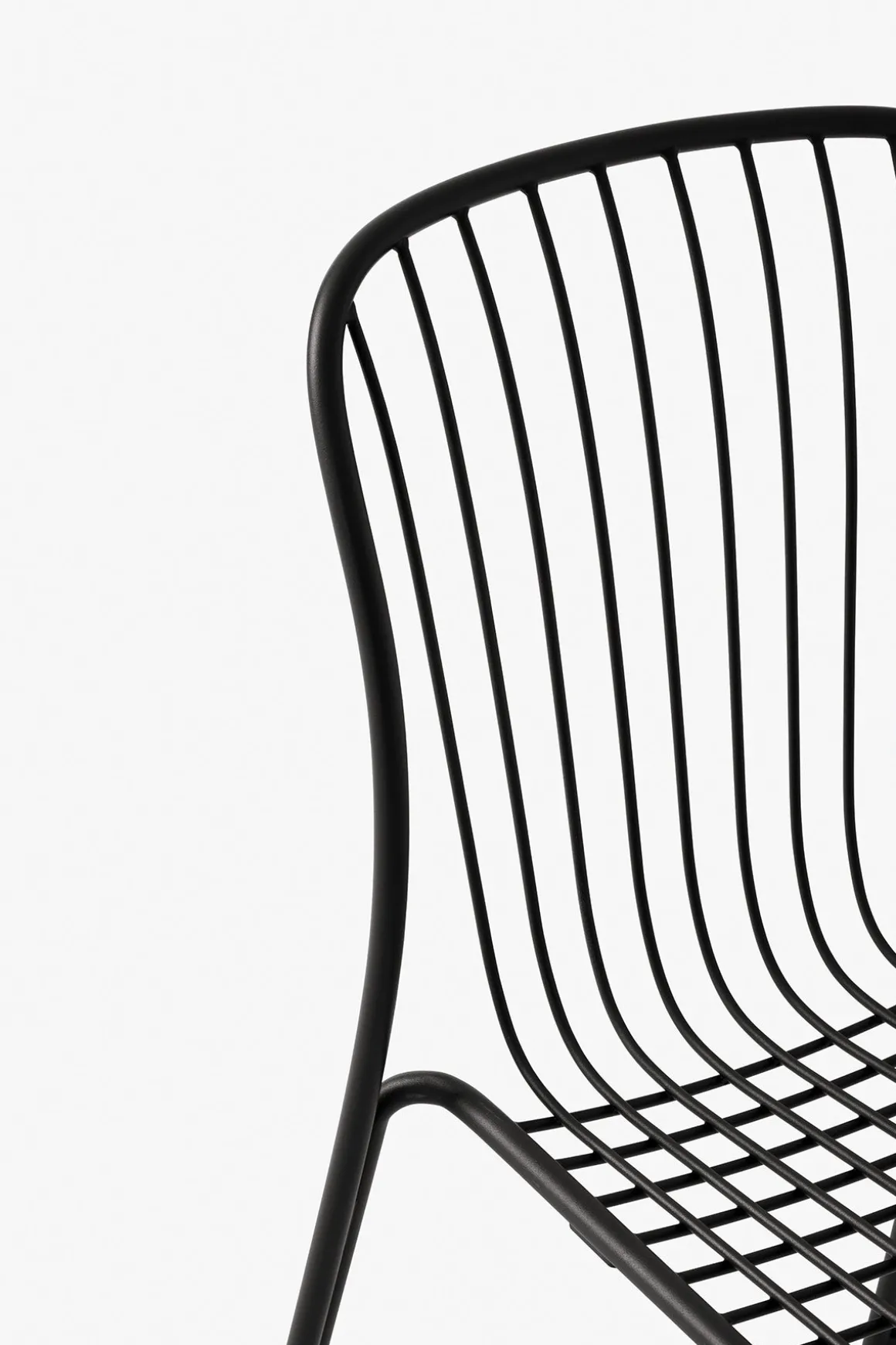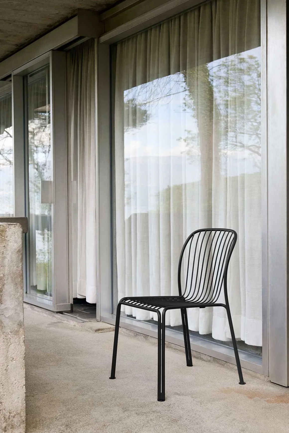 Thorvald utestol fra danske u0026amp;Tradition, designet av anerkjente Space Copenhagen. Thorvald er laget av pulverlakkert stål og kommer i sort, grønn og elfenbenshvit. Stolens ramme og spilene er bøyd og delene blir deretter sveiset, polert, galvanisert og deretter pulverlakkert. Thorvald kan kombineres med andre typer utemøbler eller du kan komplettere med bord i samme serie for en komplett look til uteplassen. Stolene kan også enkelt stables som gjør de svært praktiske og plassbesparende når de ikke er i bruk.