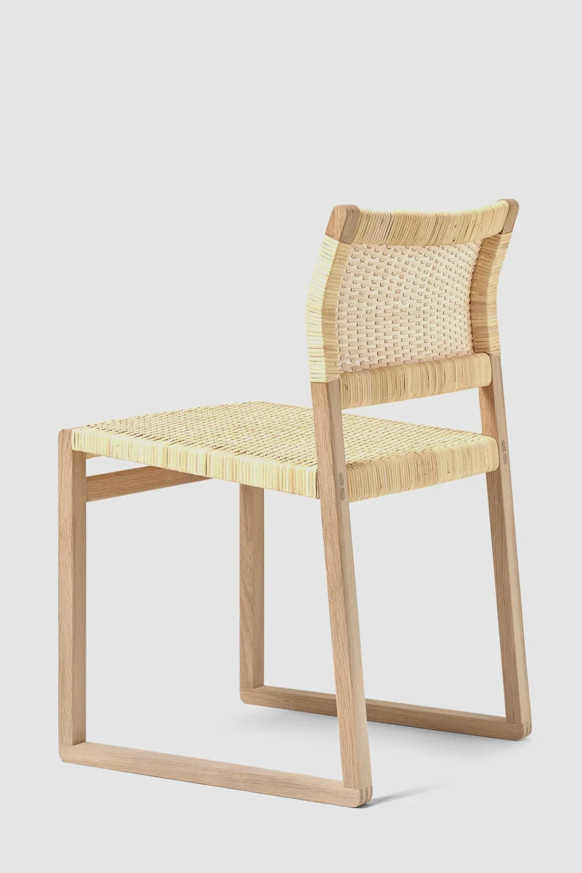 Spisestol BM 61, designet av den anerkjente, danske designeren Børge Mogensen for Fredericia. Stolen kommer med ramme av oljet eik, og valget mellom sete og rygg av linbånd eller flettet rattan. Det enkle, behagelige designet gjør stolen til en fantastisk komfortabel sitteplass både før, under og etter middagen. De tidløse materialene gjør stolen perfekt til alle hjem og interiørstiler.
