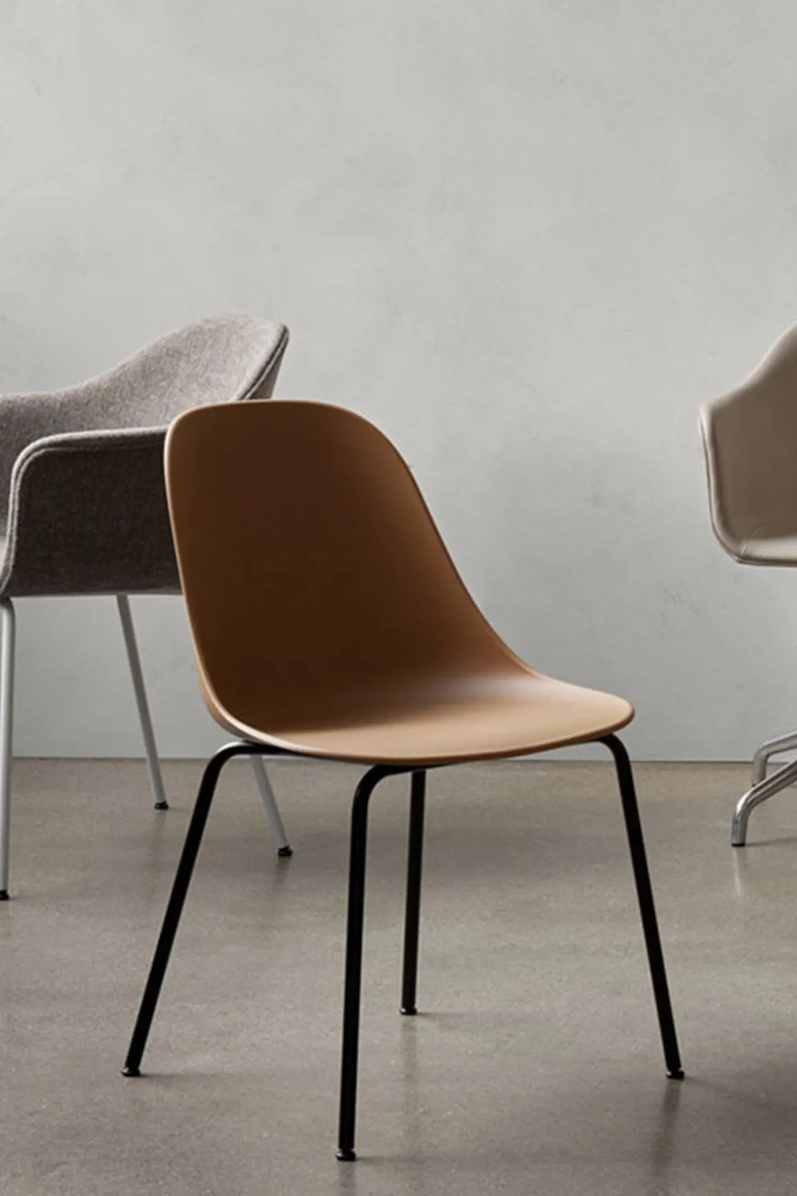 Harbour Chair spisestol med stålben og khaki-farget sete. Harbour er designet av Norm Architects og finnes i en rekke ulike utførelser og varianter. Stolen har et